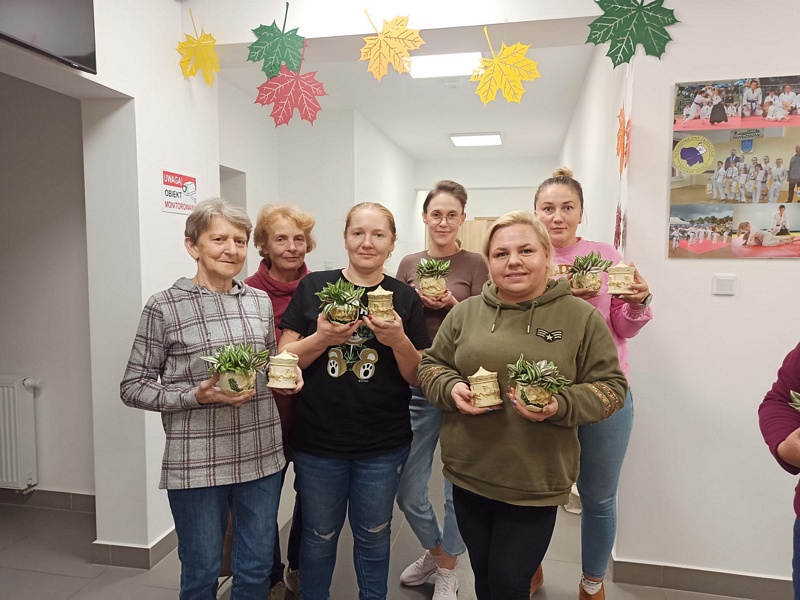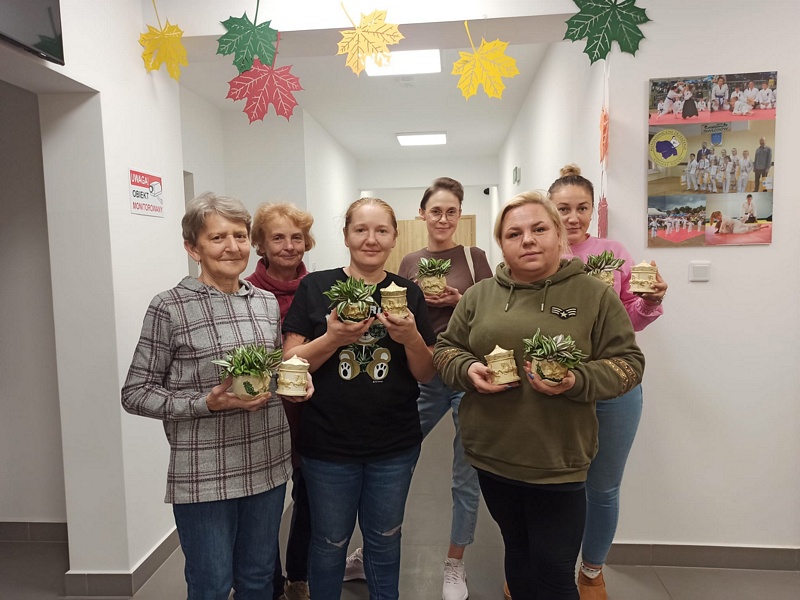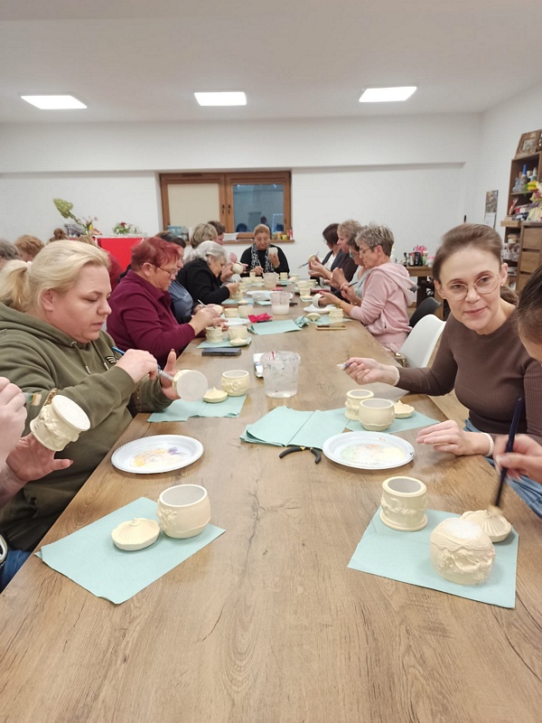 21 października w Centrum Aktywności Lokalnej w Pawłosiowie odbyły się jesienne warsztaty pod hasłem „Biały Cement – Szkatułki i Doniczki”. Spotkanie zgromadziło 31 pań z różnych sołectw Gminy Pawłosiów, które z ogromnym zaangażowaniem i kreatywnością uczestniczyły w zajęciach.