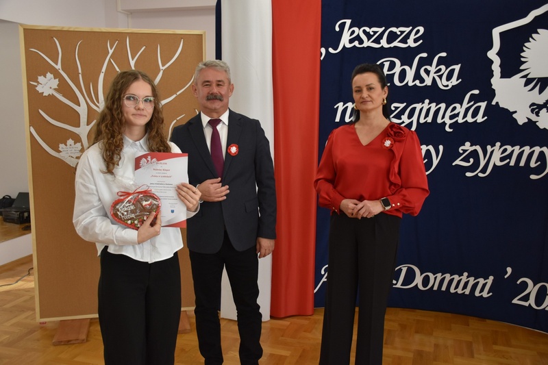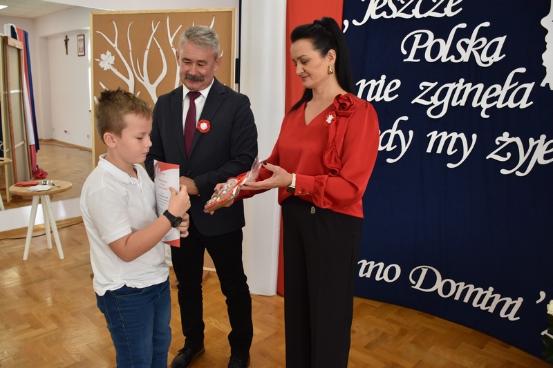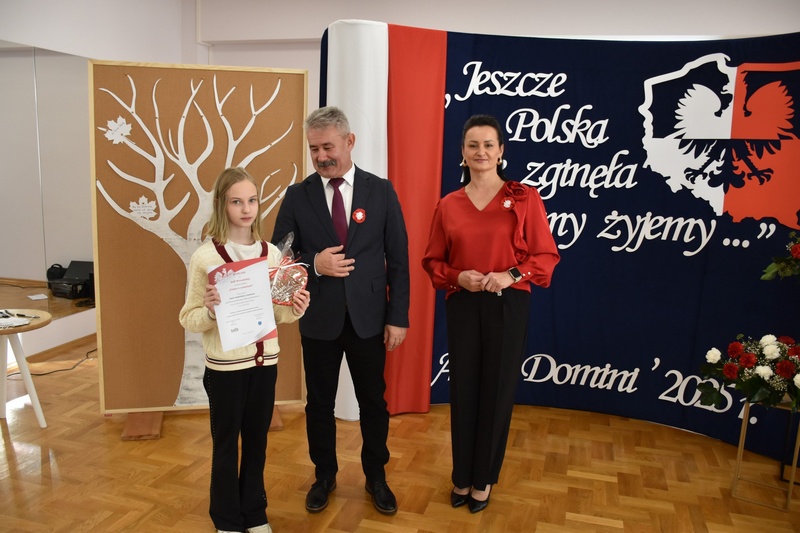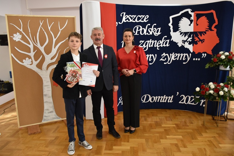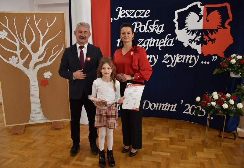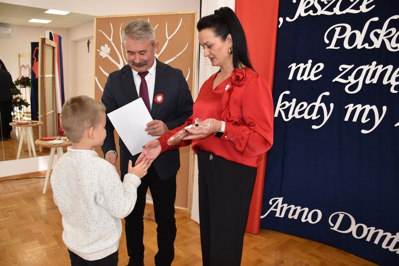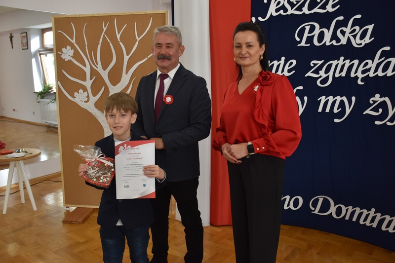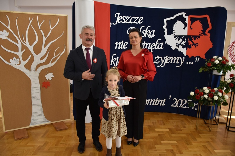 Podczas uroczystości głos zabrał gospodarz gminy pan Mariusz Reń, który pogratulował wszystkim uczestnikom talentu i zaangażowania oraz podkreślił znaczenie wychowania w duchu patriotyzmu: „Kiedy patrzymy na prace naszych najmłodszych, widzimy w nich czyste serca i miłość do Ojczyzny. To właśnie wrażliwość, pamięć i szacunek do historii budują prawdziwą wspólnotę narodową. Jestem dumny, że w naszej gminie patriotyzm żyje tak pięknie wśród dzieci i młodzieży…Życzę Wam, abyście zawsze czuli w sercach smak wolności – tej wielkiej, narodowej, i tej małej codziennej.”
