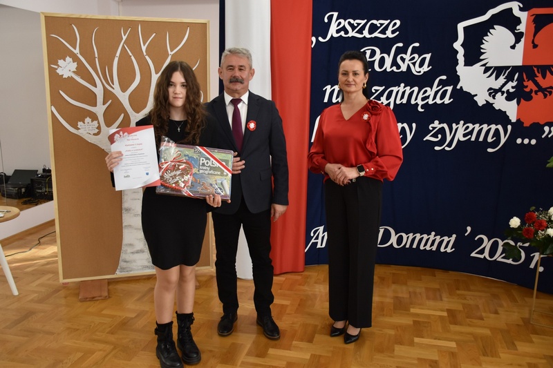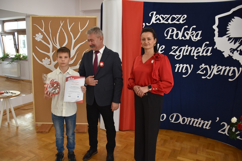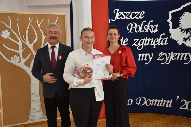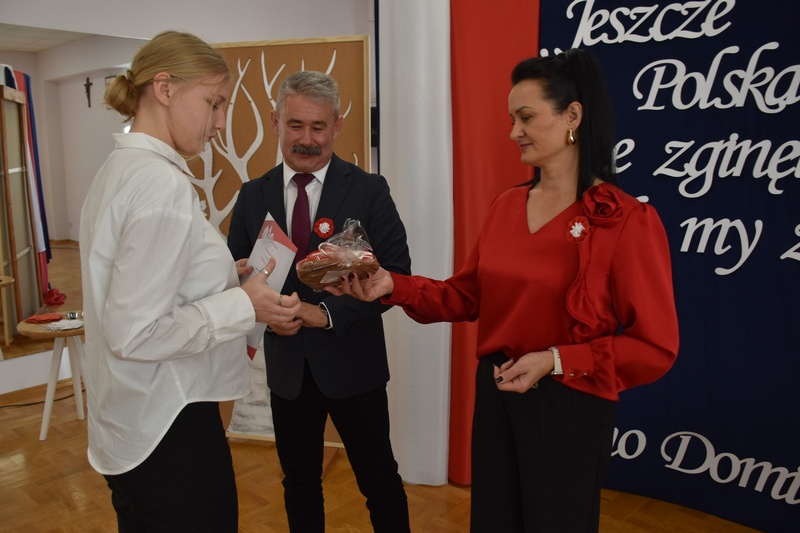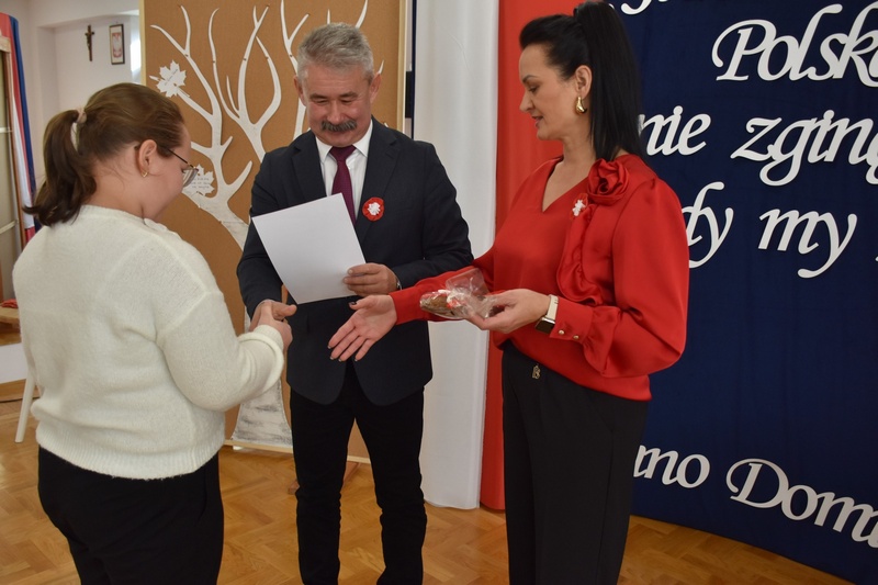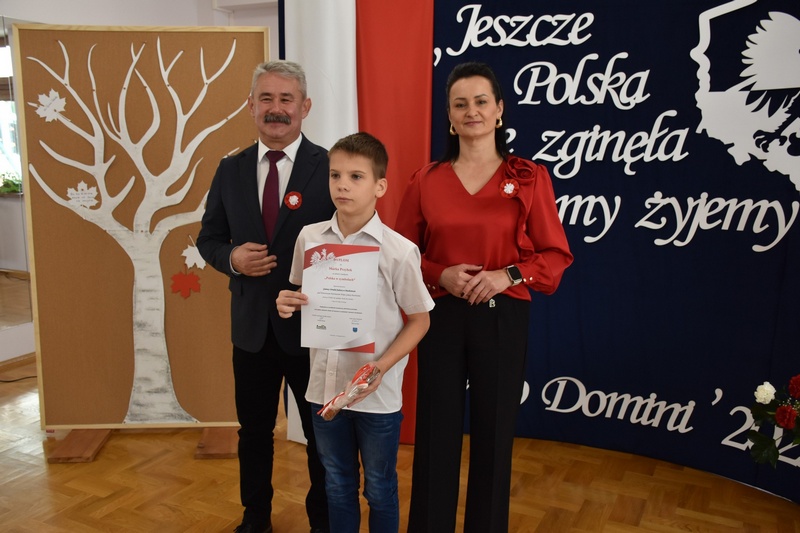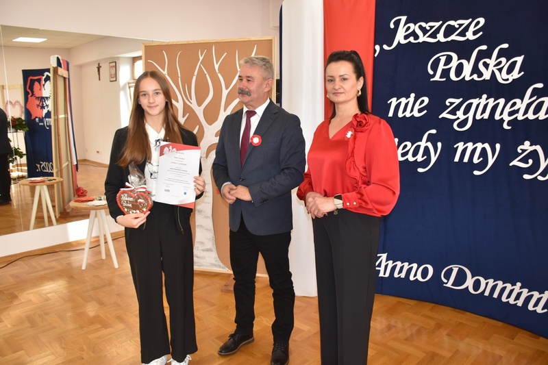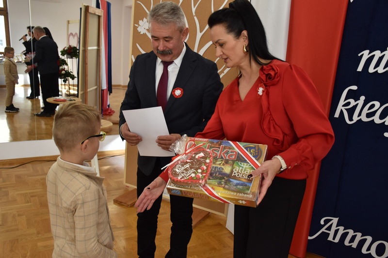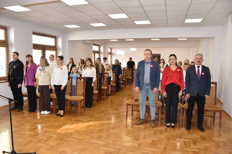 Podczas uroczystości głos zabrał gospodarz gminy pan Mariusz Reń, który pogratulował wszystkim uczestnikom talentu i zaangażowania oraz podkreślił znaczenie wychowania w duchu patriotyzmu: „Kiedy patrzymy na prace naszych najmłodszych, widzimy w nich czyste serca i miłość do Ojczyzny. To właśnie wrażliwość, pamięć i szacunek do historii budują prawdziwą wspólnotę narodową. Jestem dumny, że w naszej gminie patriotyzm żyje tak pięknie wśród dzieci i młodzieży…Życzę Wam, abyście zawsze czuli w sercach smak wolności – tej wielkiej, narodowej, i tej małej codziennej.”