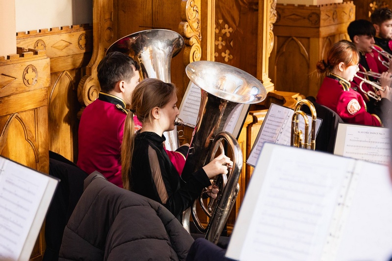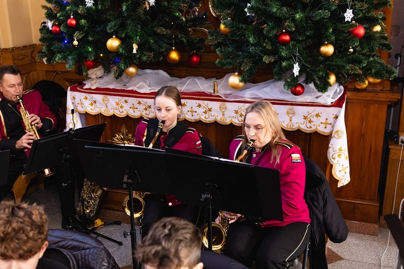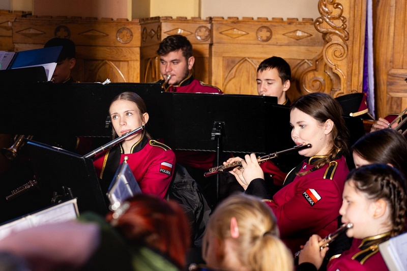 Po zakończonej Eucharystii rozpoczął się Koncert Noworoczny. Publiczność miała okazję wysłuchać zarówno klasycznych utworów orkiestralnych, tradycyjnych kolęd i pastorałek, jak i energetycznych kompozycji, które wypełniły wnętrze świątyni żywą, radosną muzyką. Każdy utwór, starannie dobrany, budował wyjątkowy nastrój, a perfekcyjne wykonanie artystów spotkało się z entuzjastycznym odbiorem słuchaczy.