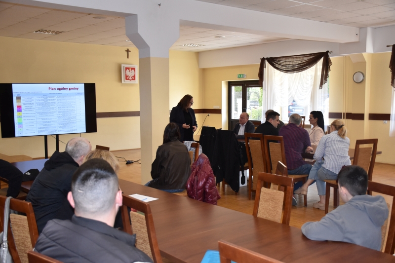 Jednym z elementów konsultacji było spotkanie otwarte poprzedzone prezentacją projektu Planu Ogólnego Gminy. Urbanista przestawiła przybyłym mieszkańcom zasady i tryb opracowywania planu ogólnego. Wyjaśniła podstawowe pojęcia występujące w planie tj.: strefa otwarta, strefa uzupełnienia zabudowy, strefy planistyczne, wskaźniki intensywności zabudowy. Przedstawiła również zasady na jakich może powstawać budownictwo mieszkaniowe jak również ograniczenia w tym zakresie.