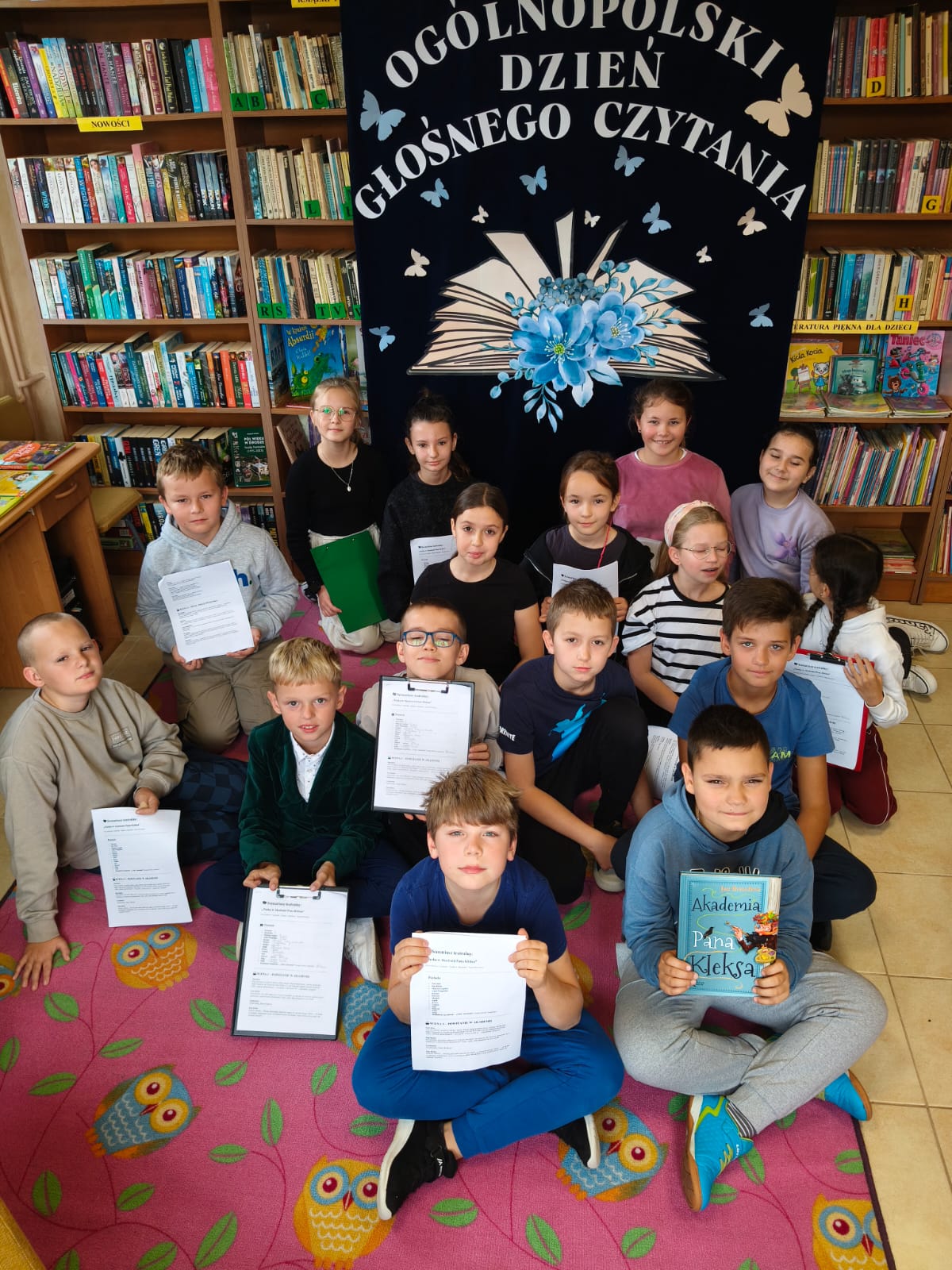 1 października w Gminnej Bibliotece Publicznej w Wierzbnej odbyło się wyjątkowe spotkanie z okazji Ogólnopolskiego Dnia Głośnego Czytania. Do wspólnej lektury zaproszona została klasa czwarta ze Szkoły Podstawowej w Wierzbnej. Celem wydarzenia było promowanie czytelnictwa oraz pokazanie dzieciom, że książki mogą być źródłem nie tylko wiedzy, ale i doskonałej zabawy. Uczniowie czytali fragmenty książki „Akademia pana Kleksa” autorstwa Jana Brzechwy. Dzieci z ogromnym zaangażowaniem wcieliły się w role bohaterów tej znanej lektury, odczytując zabawne i pełne fantazji fragmenty z podziałem na role. Nie zabrakło śmiechu, emocji i kreatywnych interpretacji tekstu. Spotkanie było doskonałą okazją do rozwijania umiejętności głośnego czytania, wyobraźni oraz pewności siebie. Na zakończenie wszyscy uczestnicy zostali nagrodzeni słodkim poczęstunkiem.