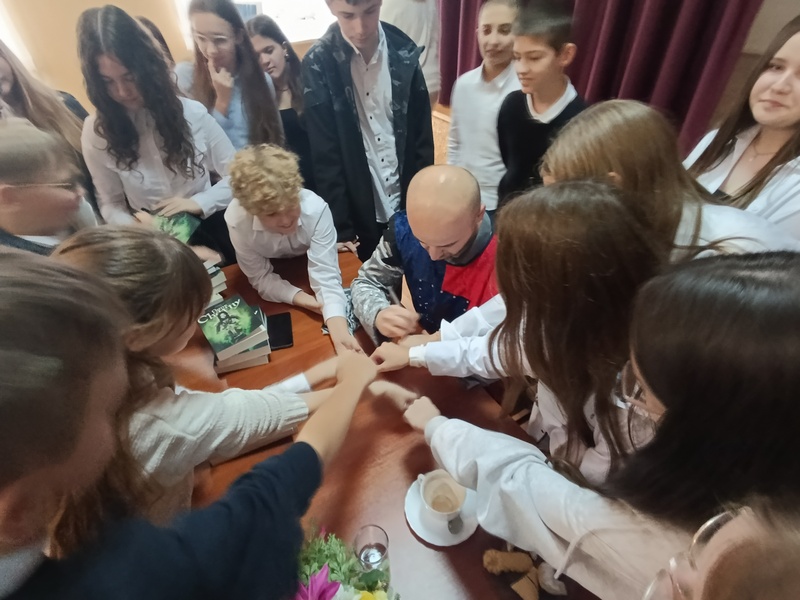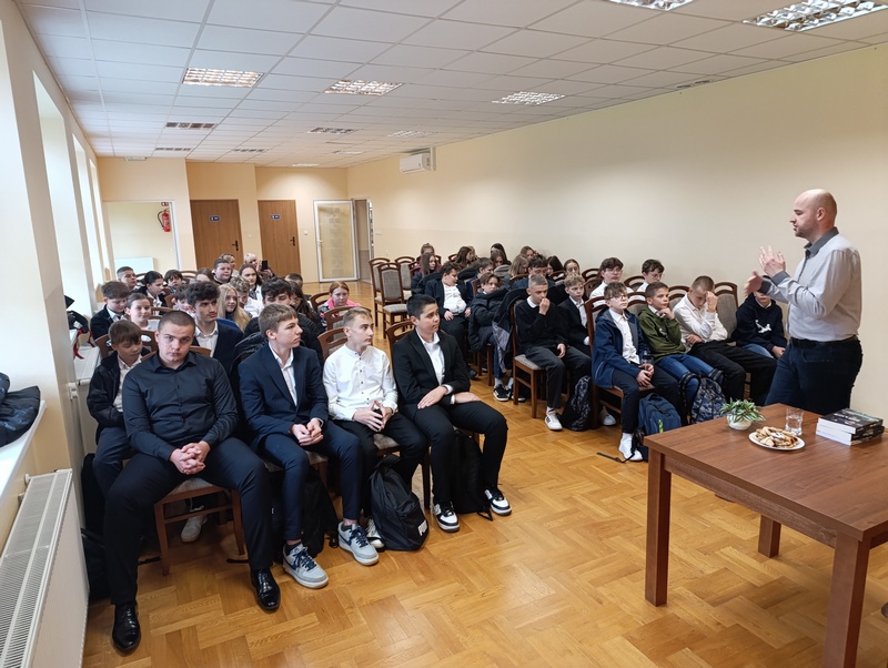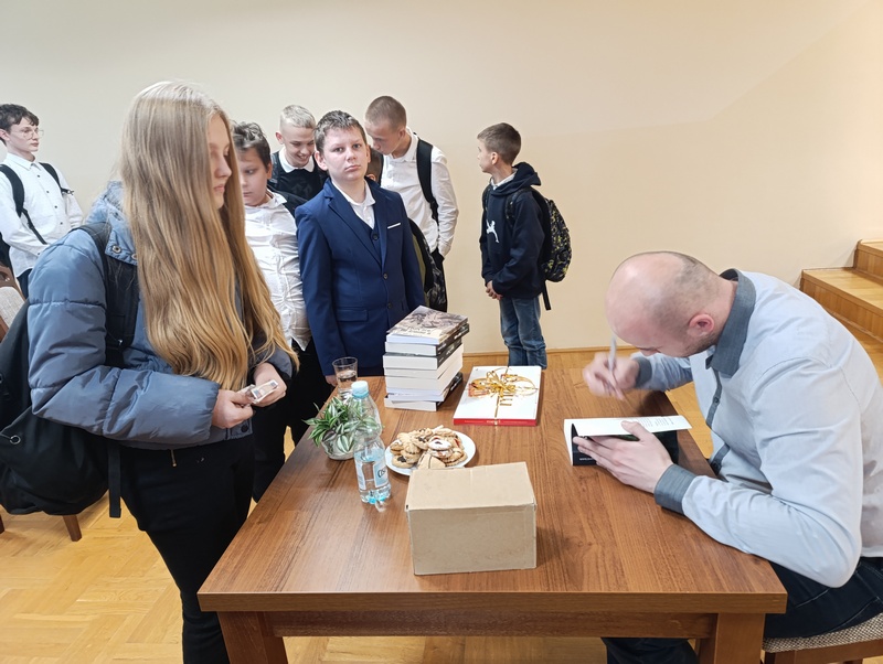 Autor opowiadał o własnych doświadczeniach związanych z grami komputerowymi, które stały się natchnieniem do pisania własnej powieści. Wspominał również o tym, że w przeszłości nie pałał sympatią do czytania książek. Jak przyznał, dopiero w wieku 21 lat trafił na gatunek, który pozwolił mu odkryć radość z czytania, dając tym do zrozumienia, że nawet jeśli koś nie lubi czytać to powinien próbować. Dobry kontakt z młodzieżą i otwartość autora na pytania sprawiły, że spotkanie odbyło się w swobodnej, dynamicznej dyskusji.