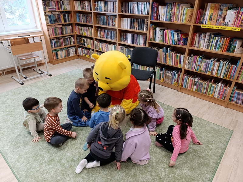 16 stycznia Filia Gminnej Biblioteki Publicznej w Cieszacinie Wielkim gościła wyjątkowego bohatera - Kubusia Puchatka. Miś opowiadał dzieciom o swoich urodzinach, które obchodzi 18 stycznia, przygodach z pszczołami, przepysznym miodku oraz swoich najlepszych przyjaciołach ze Stumilowego Lasu. Spotkaniu towarzyszył żywy dialog – dzieci z zainteresowaniem odpowiadały na pytania Solenizanta i chętnie dzieliły się własnymi spostrzeżeniami. Na zakończenie mali czytelnicy zaprosili Kubusia do biblioteki w przyszłym roku, na co Miś odpowiedział szerokim uśmiechem.