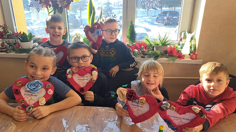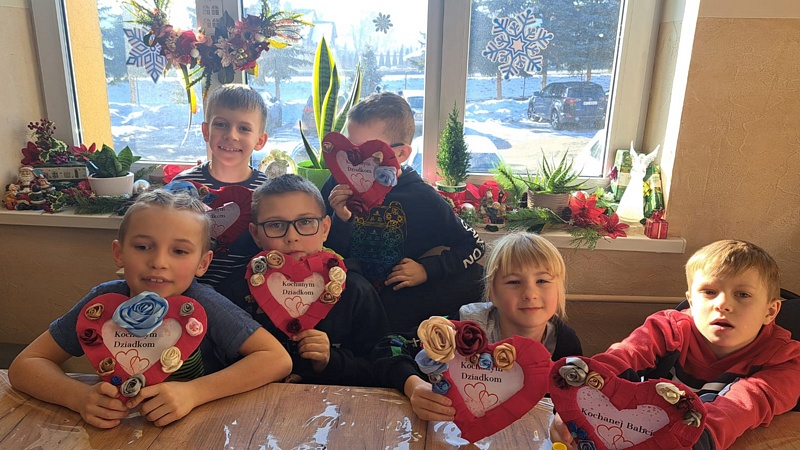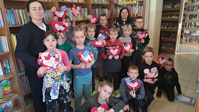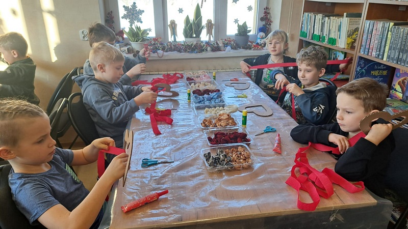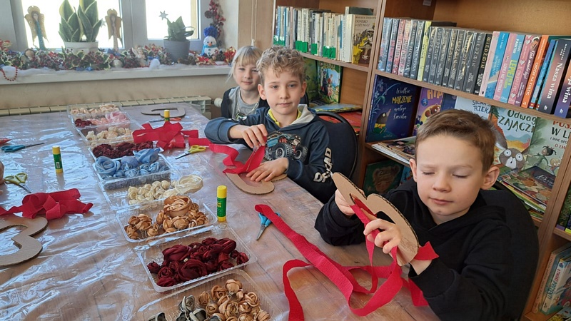 Uczniowie klasy II Szkoły Podstawowej w Wierzbnej wzięli udział w warsztatach 20 stycznia 2026 roku w Gminnej Bibliotece Publicznej w Wierzbnej. Z okazji zbliżającego się Dnia Babci i Dziadzia dzieci wykonały dla nich serduszka. Do pracy wykorzystały tekturę, klej, czerwoną krepinę, wstążki i atłasowe kwiatuszki. Przygotowane prezenty będą miłą niespodzianką i pamiątką dla kochanych Babć i Dziadziów.