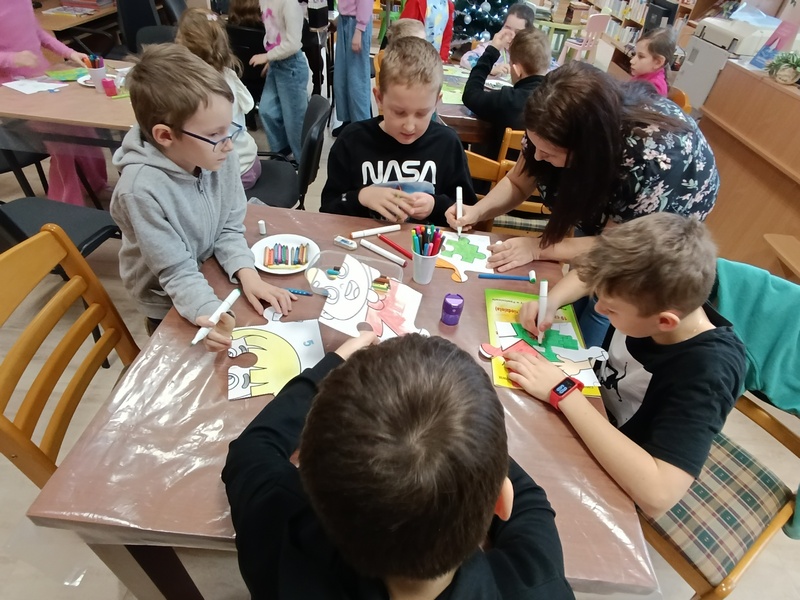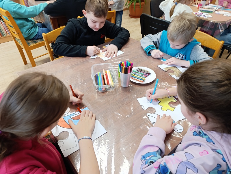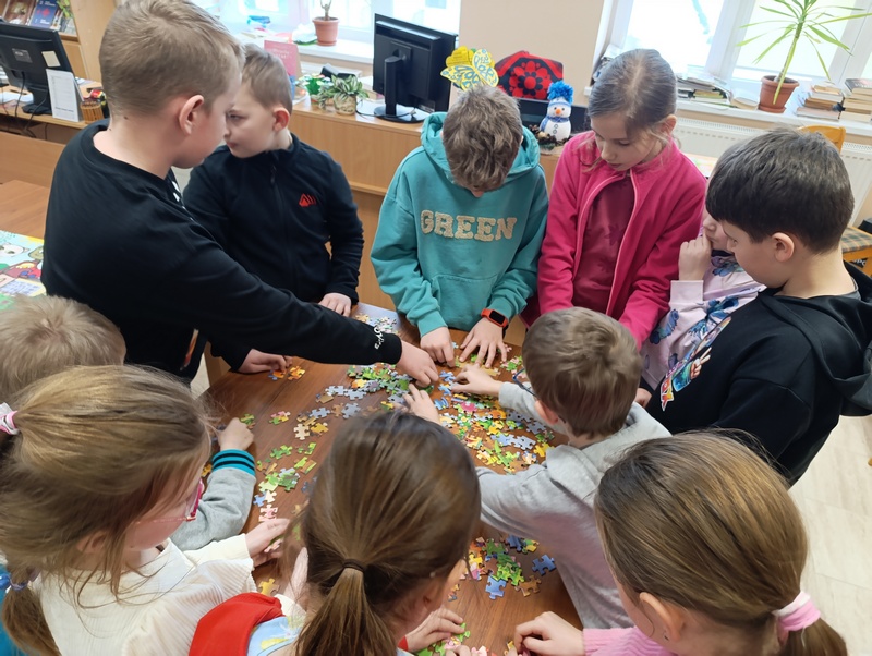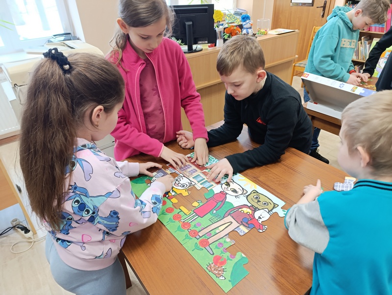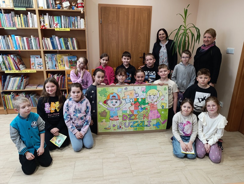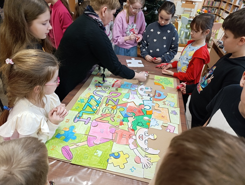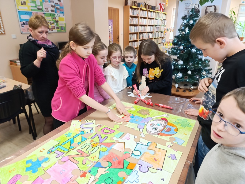 Z tej okazji Gminna Biblioteka Publiczna Filia w Cieszacinie Wielkim przygotowała twórcze zajęcia dla uczniów klasy III Szkoły Podstawowej. Dzieci, Pracując w grupach projektowały i tworzyły własne puzzle, wykazując się pomysłowością i dobrą współpracą.