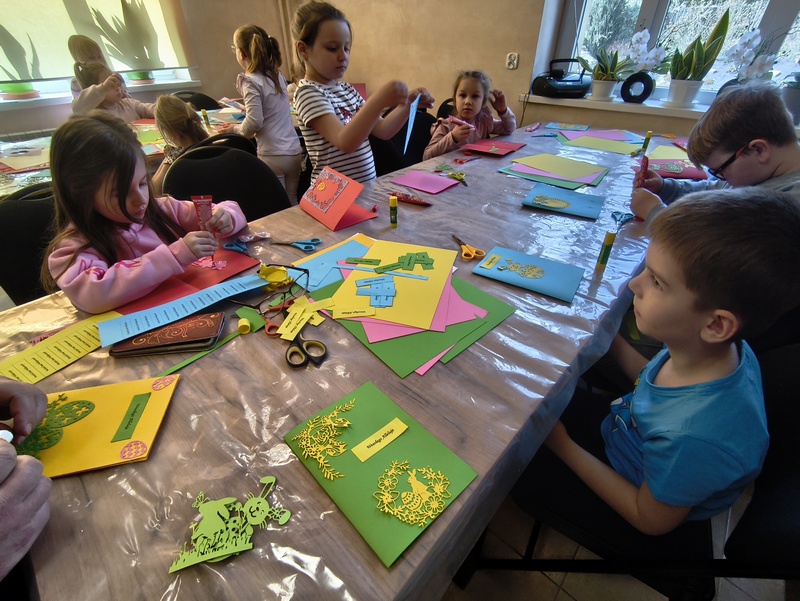 Zbliżające się Święta Wielkanocne to okazja do tworzenia kartek świątecznych. Dzieci z przedszkola przekonały się o tym podczas kreatywnych warsztatów, które odbyły się 10 marca 2026 r. w Gminnej Bibliotece Publicznej Filii w Wierzbnej. Tego dnia biblioteka zamieniła się w prawdziwy warsztat rękodzieła. Podczas zajęć dzieci poznały technikę wytłaczania ozdobnych elementów z matryc, które później wykorzystały do przygotowania swoich kartek. Każdy uczestnik miał możliwość samodzielnie spróbować tej metody i stworzyć własną pracę. Kolorowe papiery, różnorodne wzory i motywy sprawiły, że powstały piękne rękodzieła. Mamy nadzieję, że twórcza radość i świetna zabawa zapisze się w pamięci dzieci.