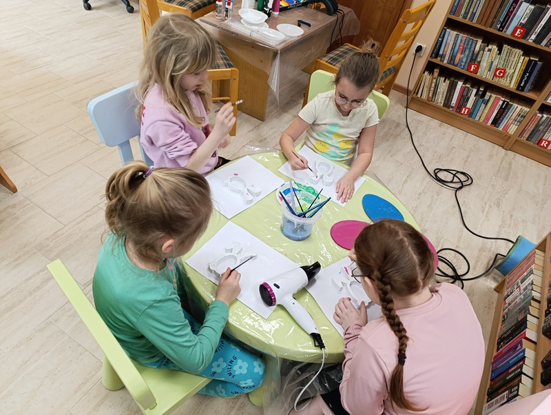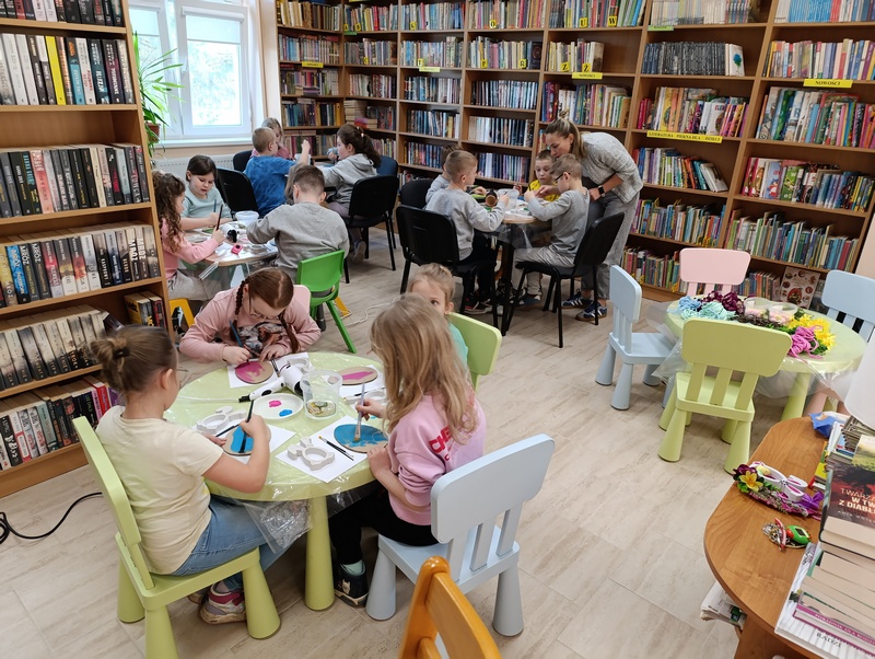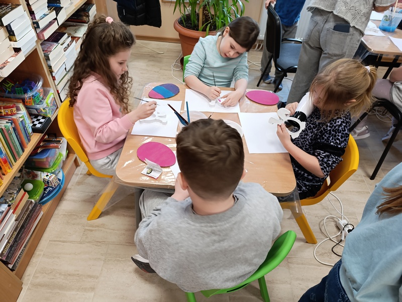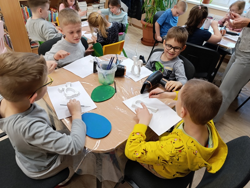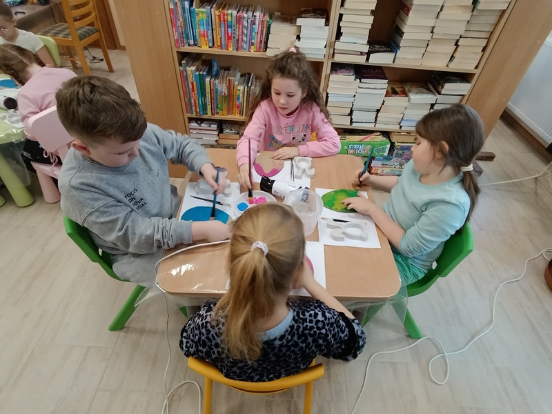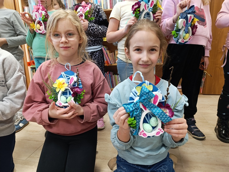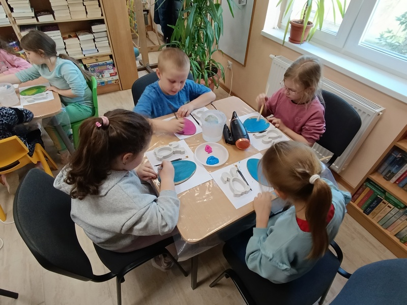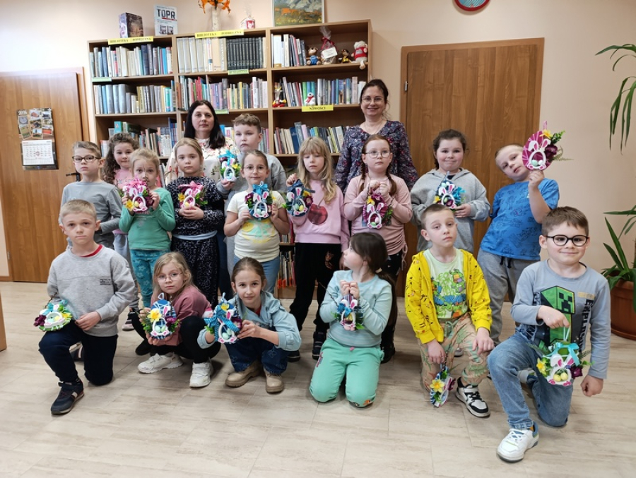 W czwartek, 19 marca 2026 roku dzieci ze Szkoły Podstawowej w Cieszacinie Wielkim rozpoczęły przygotowania do nadchodzących Świąt Wielkanocnych. Podczas wizyty w Filii Gminnej Biblioteki Publicznej w Cieszacinie Wielkim wzięły udział w warsztatach plastycznych, podczas których wykonały świąteczne ozdoby.
