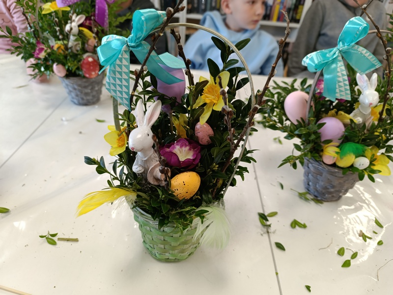 23 marca 2026 roku młodzież Zespołu Szkół w Pawłosiowie wzięła udział w warsztatach zorganizowanych przez Gminną Bibliotekę Publiczną w Pawłosiowie. Podczas spotkania uczestnicy przygotowali świąteczne koszyczki. Do ozdobienia wykorzystany został bukszpan, bazie, wiosenne kwiaty, kolorowe jajka i piórka. Każdy koszyczek odzwierciedlał indywidualny styl jego twórcy.