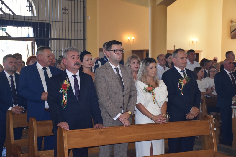 W uroczystej oprawie liturgii uczestniczyli przedstawiciele wszystkich sołectw gminy wraz z delegacjami wieńcowymi.