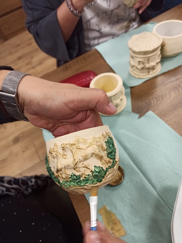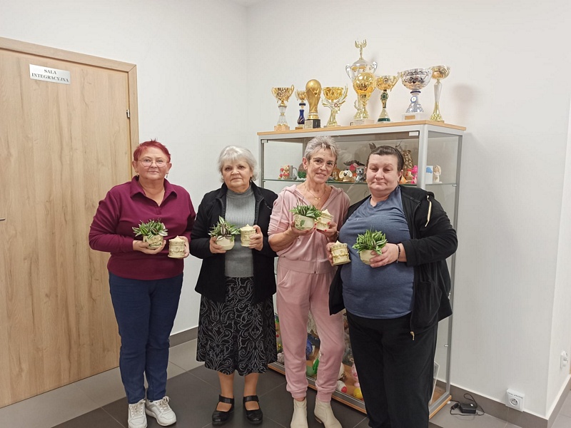 Podczas warsztatów uczestniczki miały okazję poznać technikę tworzenia dekoracyjnych szkatułek i doniczek z białego cementu – materiału, który daje wiele możliwości artystycznego wyrazu. Praca z nim wymaga precyzji, cierpliwości i wyobraźni, ale jednocześnie przynosi wiele satysfakcji. W efekcie powstały piękne, unikatowe prace, które z pewnością będą ozdobą altanek, domów i ogrodów.