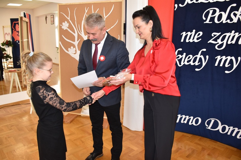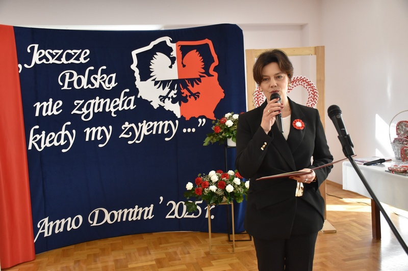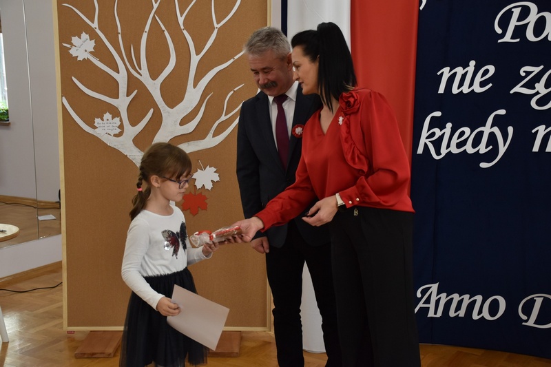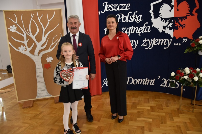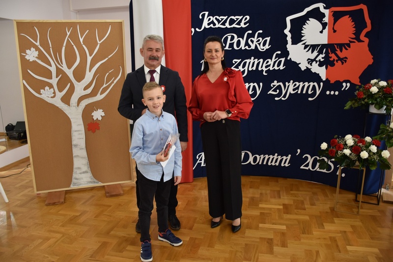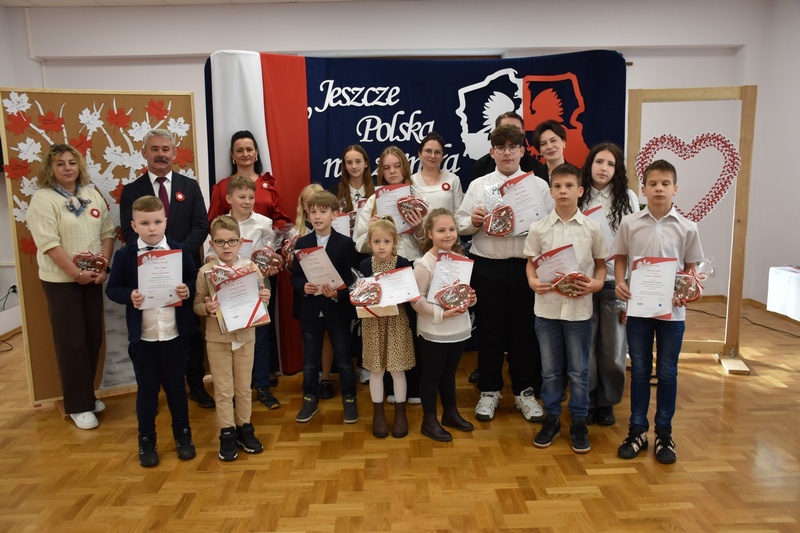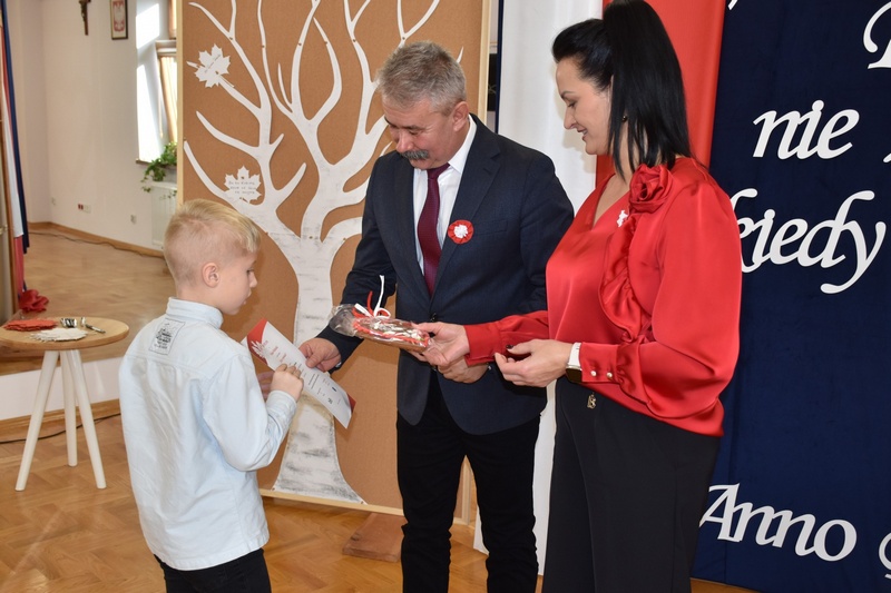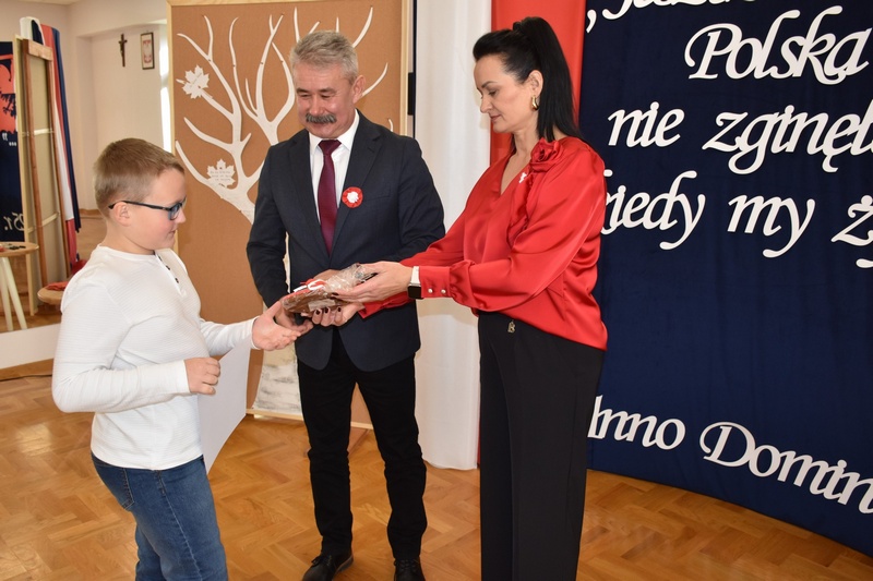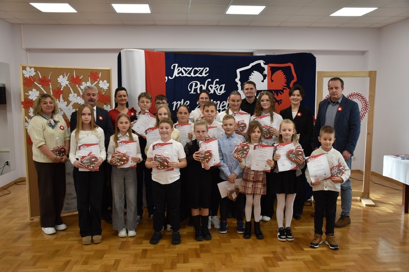 Podczas uroczystości głos zabrał gospodarz gminy pan Mariusz Reń, który pogratulował wszystkim uczestnikom talentu i zaangażowania oraz podkreślił znaczenie wychowania w duchu patriotyzmu: „Kiedy patrzymy na prace naszych najmłodszych, widzimy w nich czyste serca i miłość do Ojczyzny. To właśnie wrażliwość, pamięć i szacunek do historii budują prawdziwą wspólnotę narodową. Jestem dumny, że w naszej gminie patriotyzm żyje tak pięknie wśród dzieci i młodzieży…Życzę Wam, abyście zawsze czuli w sercach smak wolności – tej wielkiej, narodowej, i tej małej codziennej.”