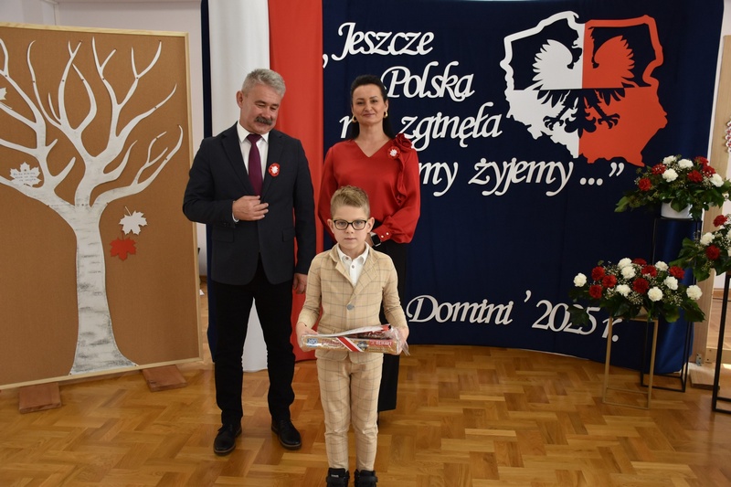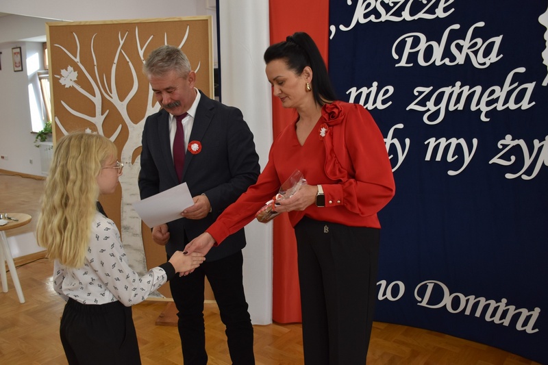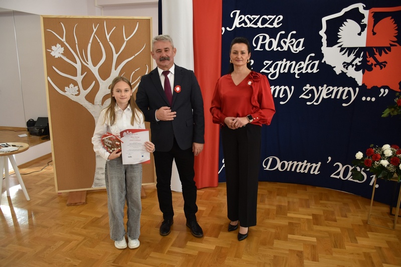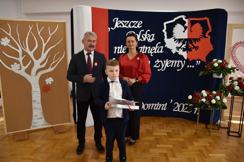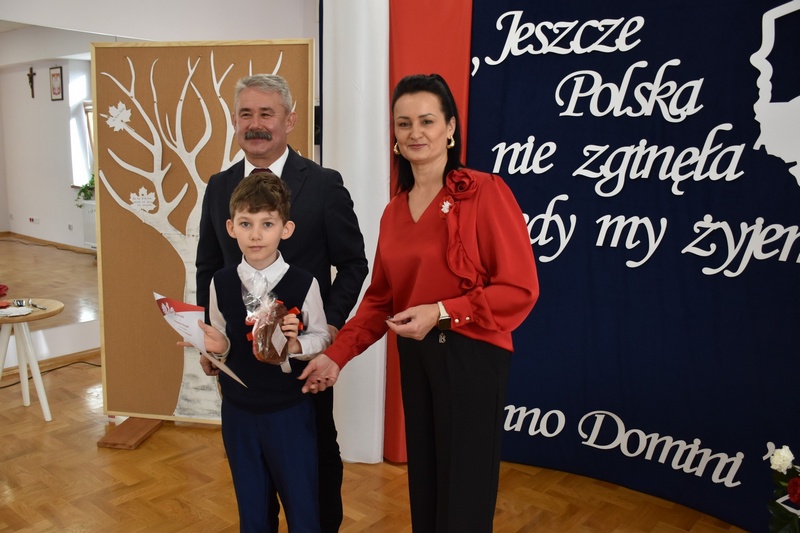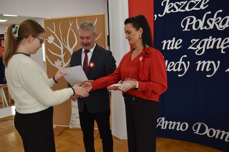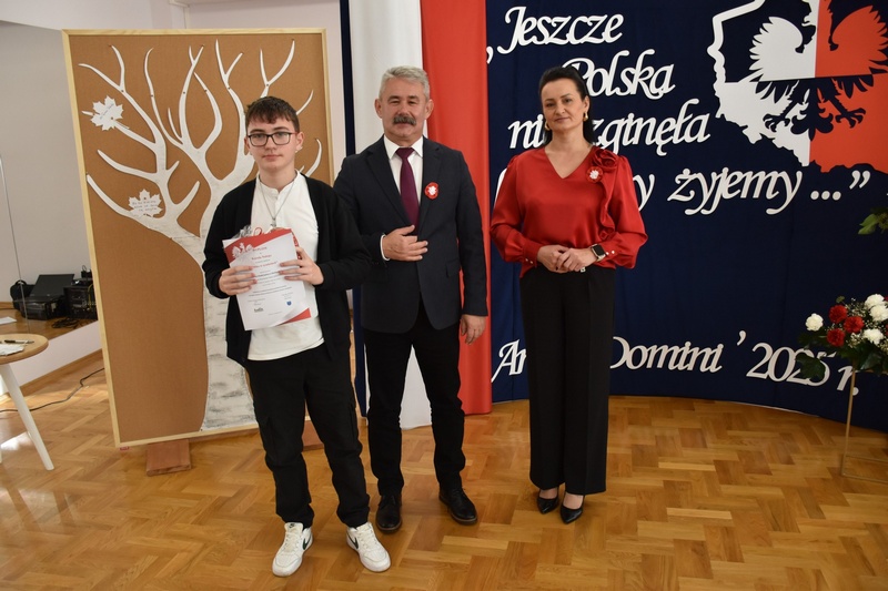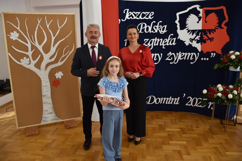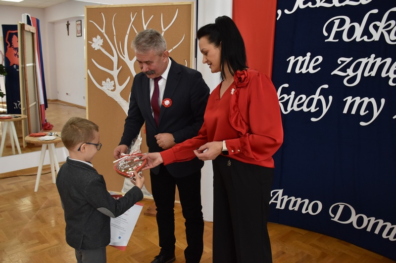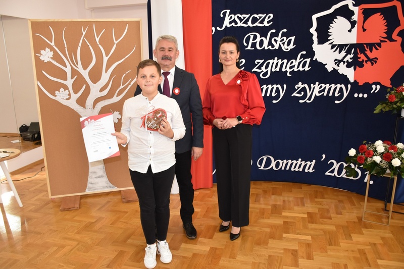 Podczas uroczystości głos zabrał gospodarz gminy pan Mariusz Reń, który pogratulował wszystkim uczestnikom talentu i zaangażowania oraz podkreślił znaczenie wychowania w duchu patriotyzmu: „Kiedy patrzymy na prace naszych najmłodszych, widzimy w nich czyste serca i miłość do Ojczyzny. To właśnie wrażliwość, pamięć i szacunek do historii budują prawdziwą wspólnotę narodową. Jestem dumny, że w naszej gminie patriotyzm żyje tak pięknie wśród dzieci i młodzieży…Życzę Wam, abyście zawsze czuli w sercach smak wolności – tej wielkiej, narodowej, i tej małej codziennej.”