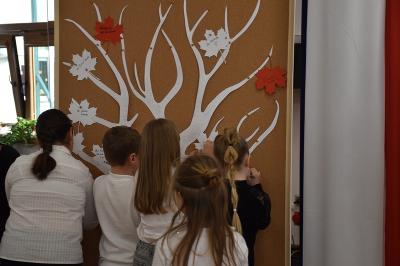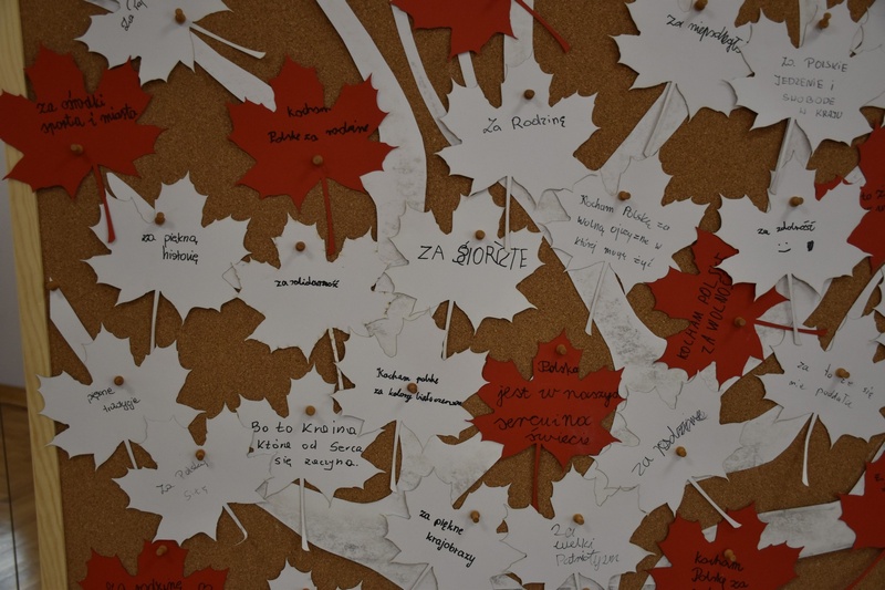 W trakcie przygotowań do wydarzenia pojawiło się również drzewko symboli – specjalna dekoracja, na której uczestnicy umieścili biało-czerwone liście z zapiskiem swoich myśli i uczuć: „Za co kocham Polskę”. Pojawiły się na nich słowa: „za wolność”, „za biało-czerwoną flagę”, „za rodzinę”, „za historię i bohaterów”, „za góry i morze”. Drzewko stało się pięknym, symbolicznym centrum przestrzeni, miejscem łączącym wszystkie prace i podkreślającym ideę wspólnoty.