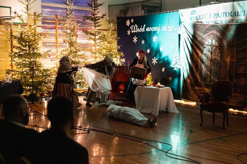 Program wydarzenia wzbogaciło również wystąpienie Stowarzyszenia Rekonstrukcyjno –Historycznego ,,Pąsowa róża” z Jarosławia, które zaprezentowało inscenizację ,,Opowieść wigilijna” według Charlesa Dickensa. Obecność teatru historycznego w naturalny sposób poszerzyła formułę Przeglądu, wpisując literacką opowieść o wigilijnej przemianie w świąteczny i refleksyjny charakter spotkania. Po występach uczestnicy i goście zostali zaproszeni na poczęstunek do świetlicy, gdzie w serdecznej atmosferze toczyły się rozmowy i wspomnienia. Jury w tym czasie obradowało, a następnie ogłoszono wyniki i wręczono nagrody.