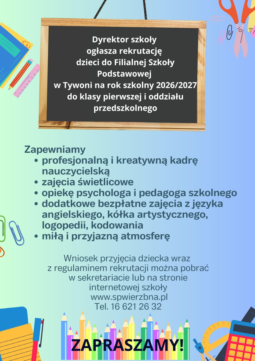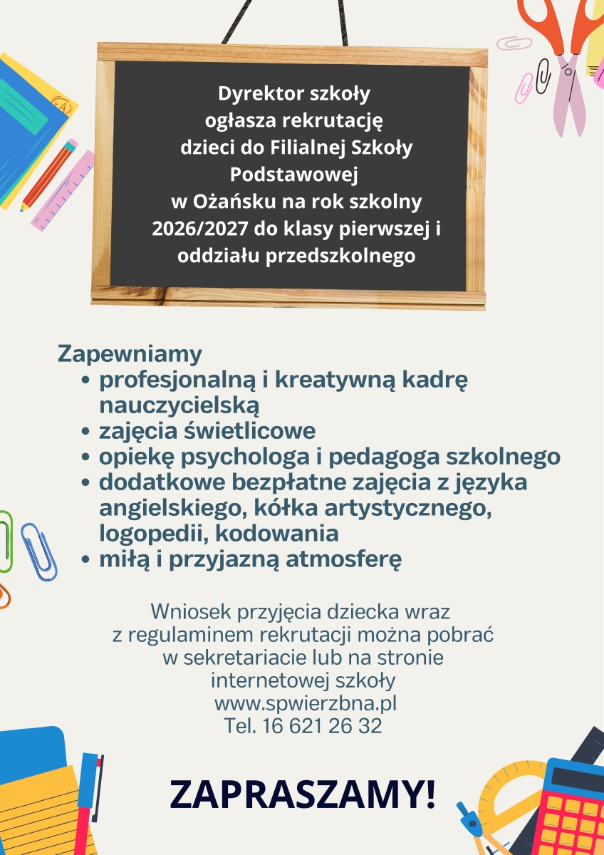 REKRUTACJA NA ROK SZKOLNY 2026/2027 - SP W WIERZBNEJ