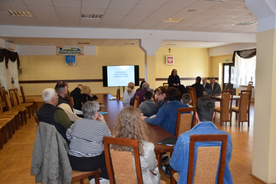 22 kwietnia br. w świetlicy wiejskiej w Pawłosiowie, w ramach partycypacji społecznych miały miejsce konsultacje, jako jeden z niezbędnych elementów procedury planistycznej, z udziałem osób opracowujących projekt Planu Ogólnego Gminy (urbanisty).