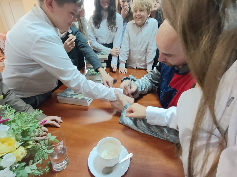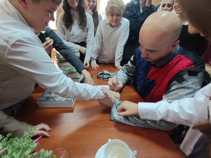 Autor opowiadał o własnych doświadczeniach związanych z grami komputerowymi, które stały się natchnieniem do pisania własnej powieści. Wspominał również o tym, że w przeszłości nie pałał sympatią do czytania książek. Jak przyznał, dopiero w wieku 21 lat trafił na gatunek, który pozwolił mu odkryć radość z czytania, dając tym do zrozumienia, że nawet jeśli koś nie lubi czytać to powinien próbować. Dobry kontakt z młodzieżą i otwartość autora na pytania sprawiły, że spotkanie odbyło się w swobodnej, dynamicznej dyskusji.