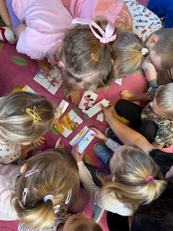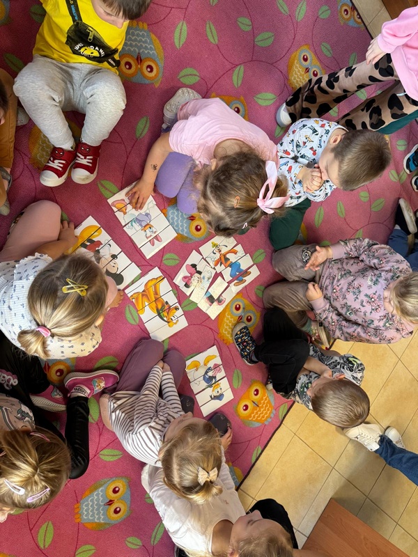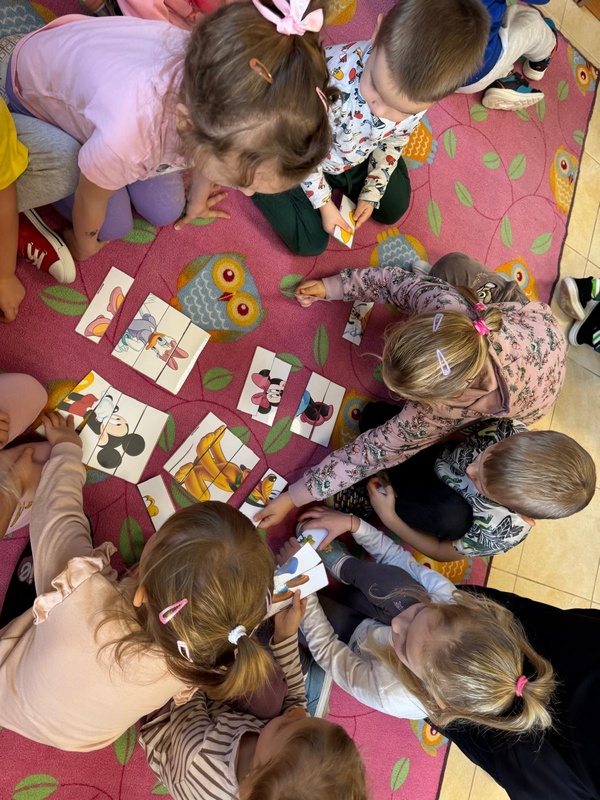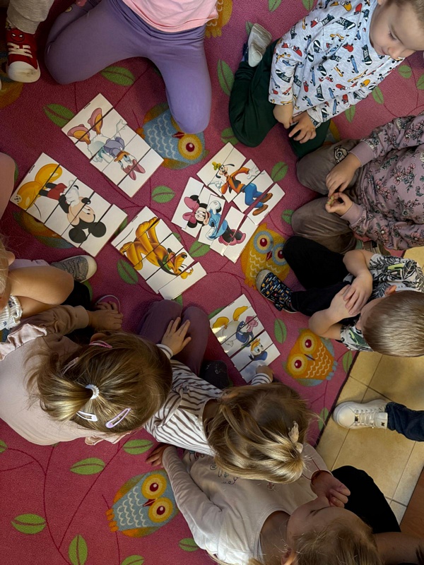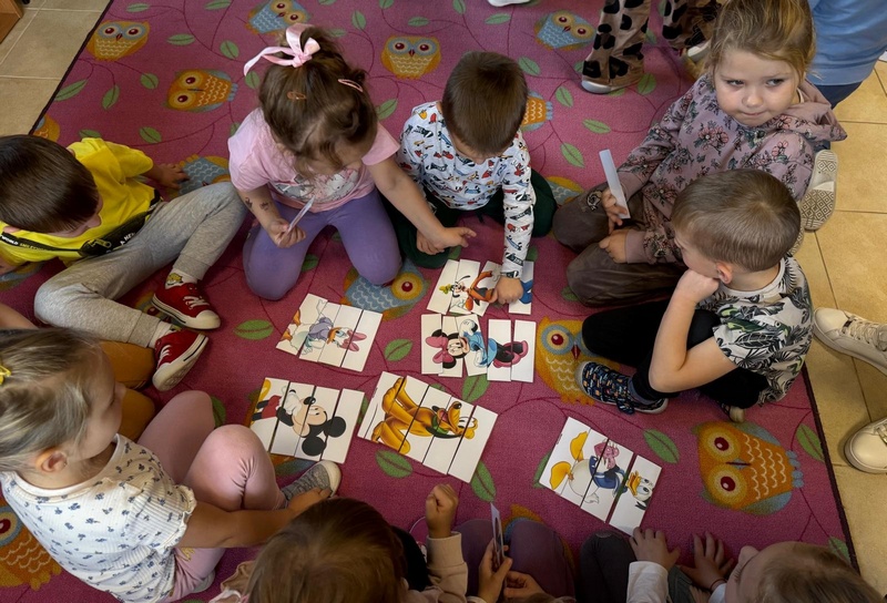 Podczas zajęć dzieci układały puzzle z wizerunkami postaci z bajki, co sprawiło im mnóstwo frajdy i satysfakcji.