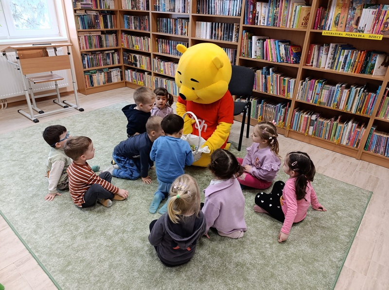 16 stycznia Filia Gminnej Biblioteki Publicznej w Cieszacinie Wielkim gościła wyjątkowego bohatera - Kubusia Puchatka. Miś opowiadał dzieciom o swoich urodzinach, które obchodzi 18 stycznia, przygodach z pszczołami, przepysznym miodku oraz swoich najlepszych przyjaciołach ze Stumilowego Lasu. Spotkaniu towarzyszył żywy dialog – dzieci z zainteresowaniem odpowiadały na pytania Solenizanta i chętnie dzieliły się własnymi spostrzeżeniami. Na zakończenie mali czytelnicy zaprosili Kubusia do biblioteki w przyszłym roku, na co Miś odpowiedział szerokim uśmiechem.