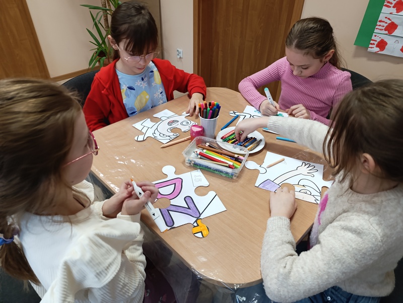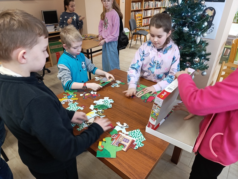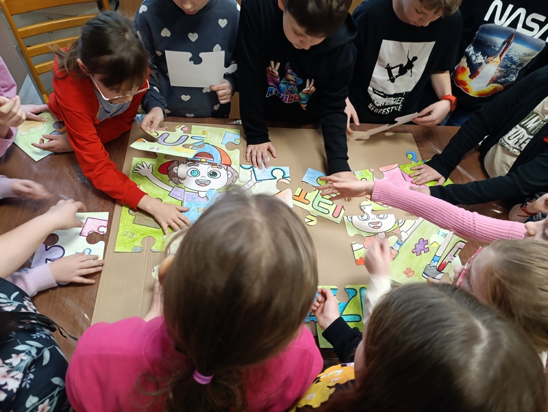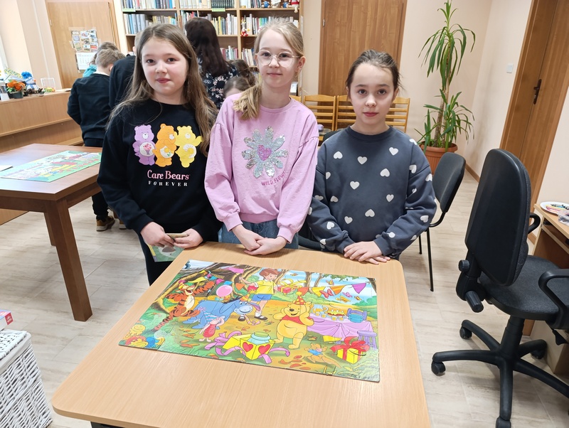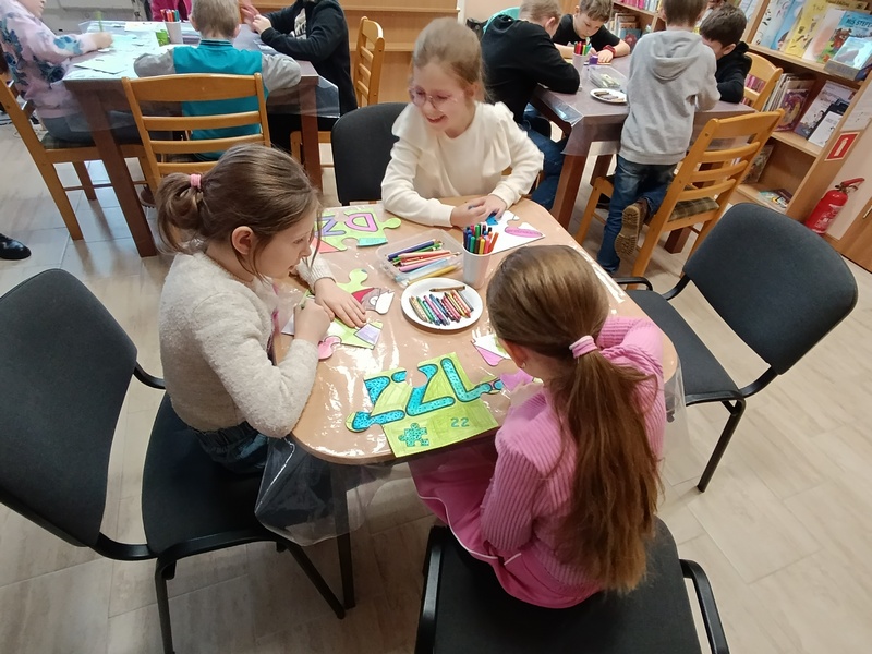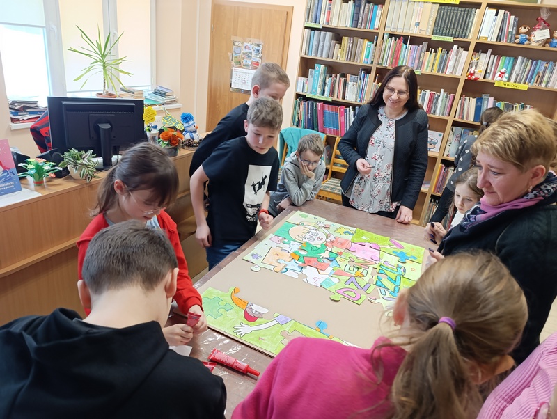 Z tej okazji Gminna Biblioteka Publiczna Filia w Cieszacinie Wielkim przygotowała twórcze zajęcia dla uczniów klasy III Szkoły Podstawowej. Dzieci, Pracując w grupach projektowały i tworzyły własne puzzle, wykazując się pomysłowością i dobrą współpracą.
