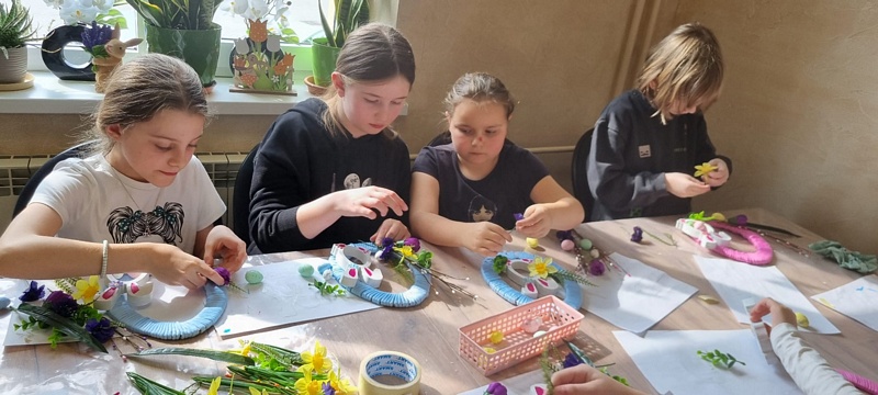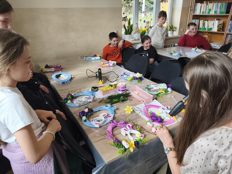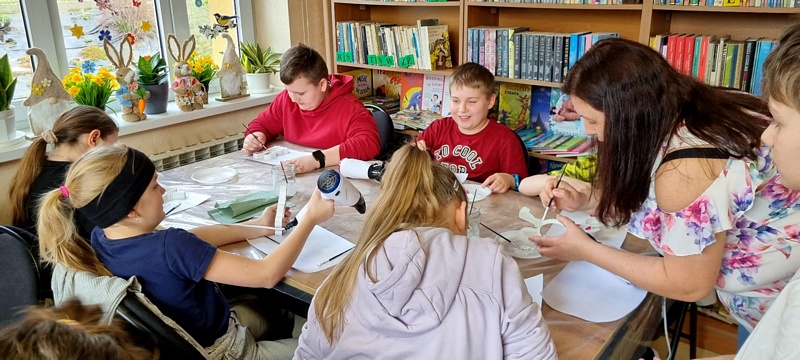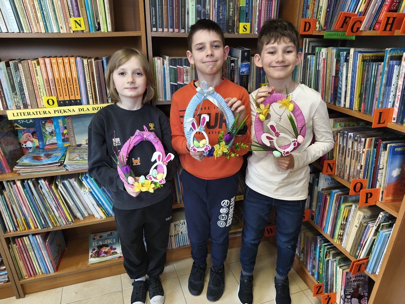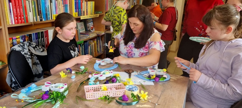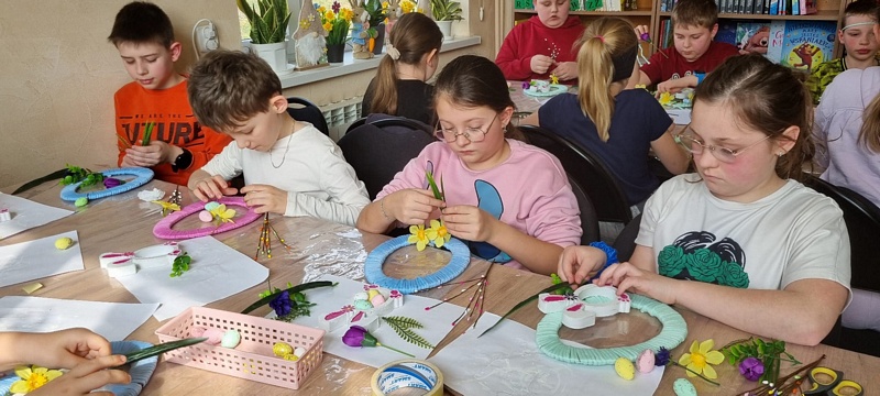 Z okazji zbliżających się Świąt Wielkanocnych Gminna Biblioteka Publiczna Filia w Wierzbnej 17 marca 2026 r. zorganizowała warsztaty dla uczniów klasy trzeciej Szkoły Podstawowej. Podczas zajęć dzieci tworzyły ozdoby wielkanocne. Uczestnicy malowali zajączki wykorzystując farby akrylowe, zawijali włóczkę wokół tekturowych pisanek i ozdabiali swoje prace elementami dekoracyjnymi. Chętnie dzieliły się swoimi pomysłami i z dumą prezentowały swoje prace.