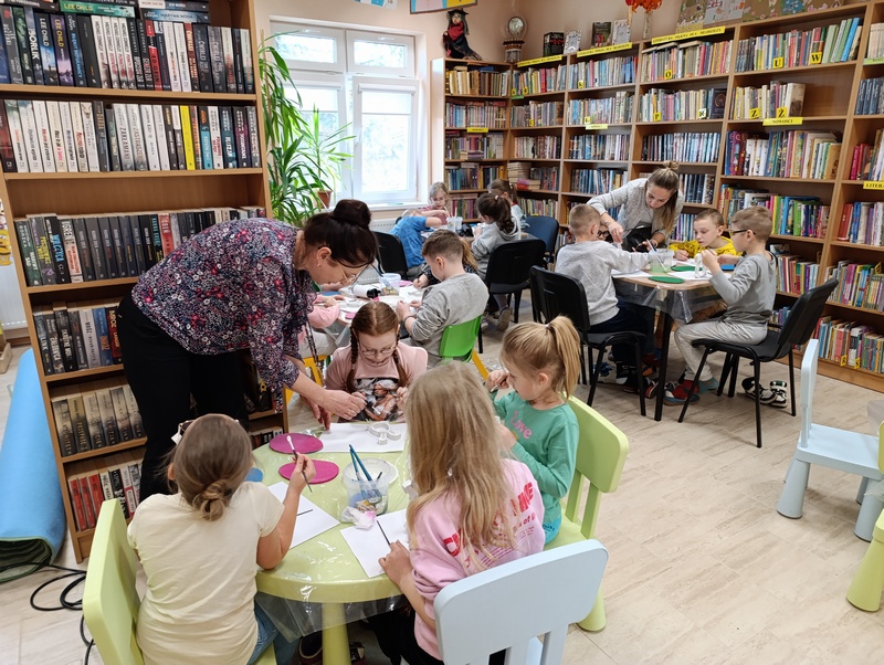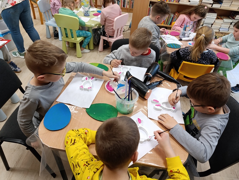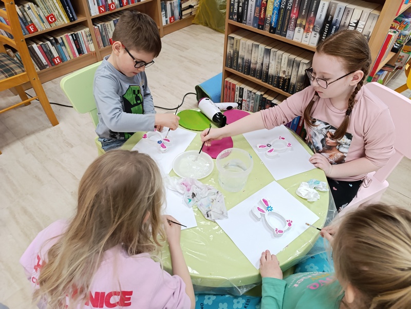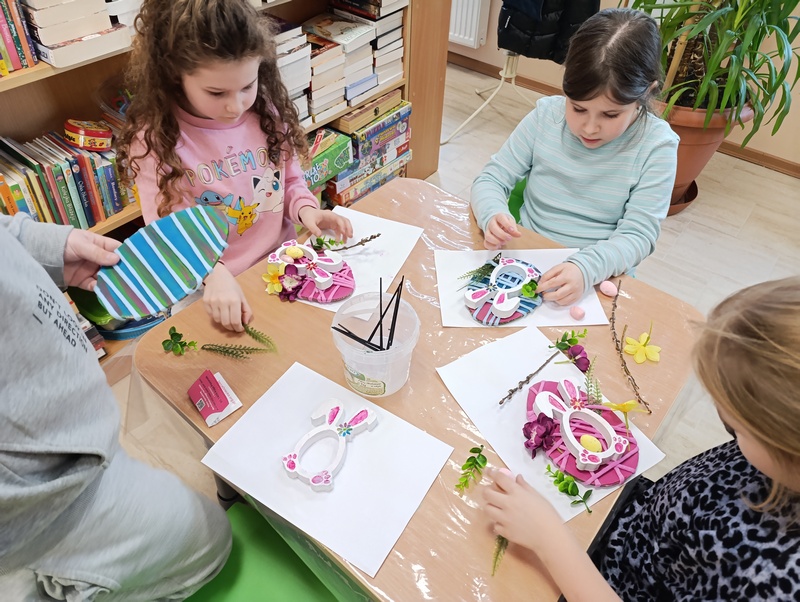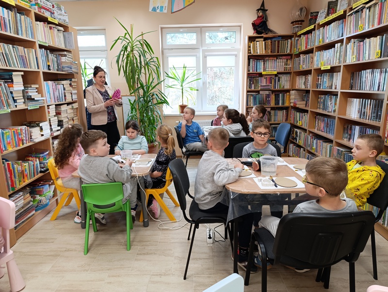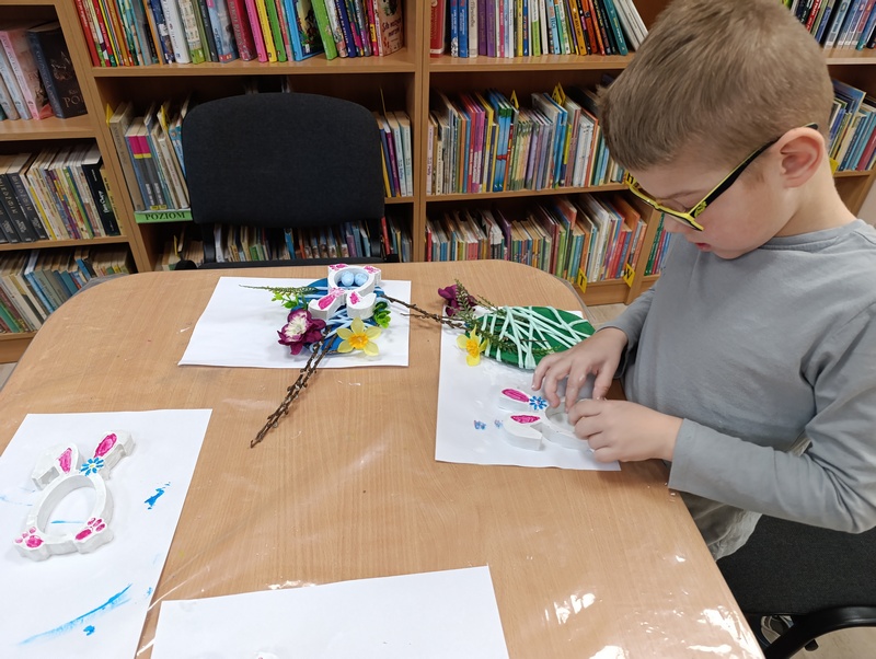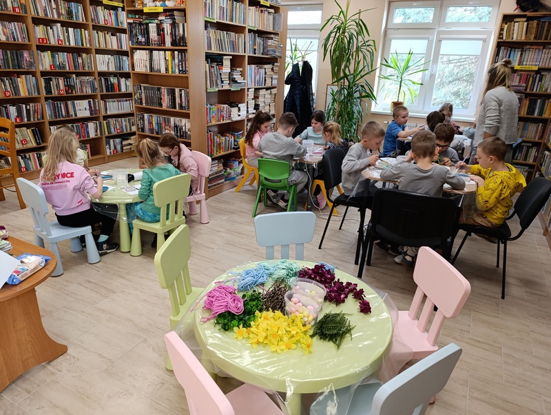 W czwartek, 19 marca 2026 roku dzieci ze Szkoły Podstawowej w Cieszacinie Wielkim rozpoczęły przygotowania do nadchodzących Świąt Wielkanocnych. Podczas wizyty w Filii Gminnej Biblioteki Publicznej w Cieszacinie Wielkim wzięły udział w warsztatach plastycznych, podczas których wykonały świąteczne ozdoby.