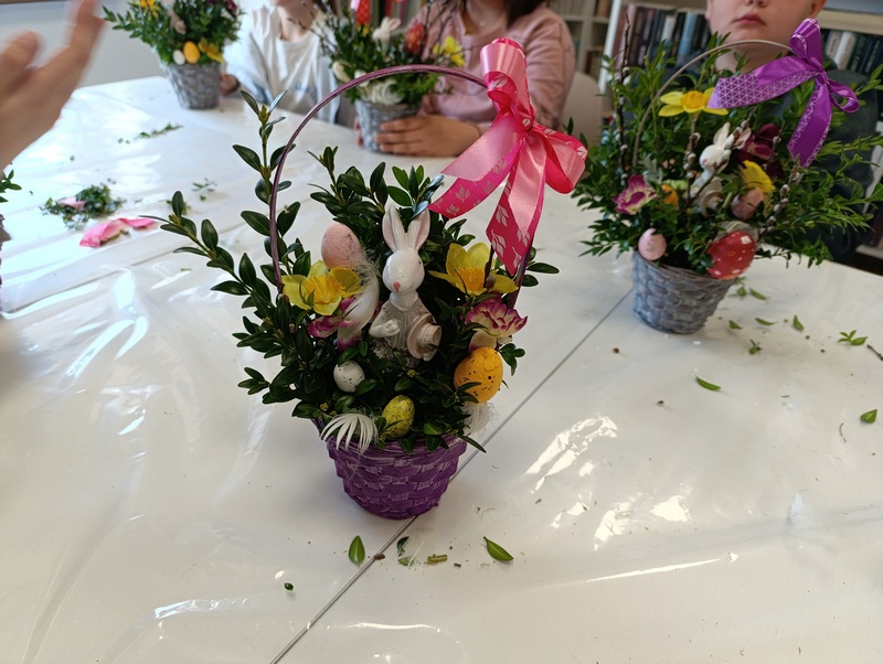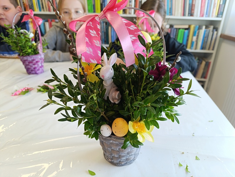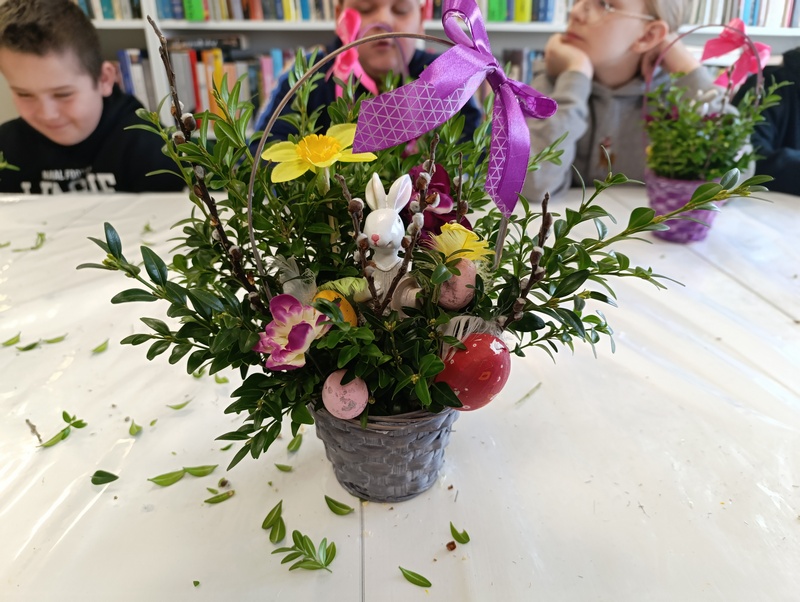 23 marca 2026 roku młodzież Zespołu Szkół w Pawłosiowie wzięła udział w warsztatach zorganizowanych przez Gminną Bibliotekę Publiczną w Pawłosiowie. Podczas spotkania uczestnicy przygotowali świąteczne koszyczki. Do ozdobienia wykorzystany został bukszpan, bazie, wiosenne kwiaty, kolorowe jajka i piórka. Każdy koszyczek odzwierciedlał indywidualny styl jego twórcy.