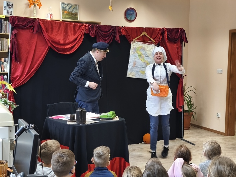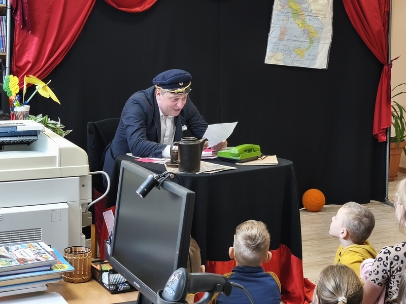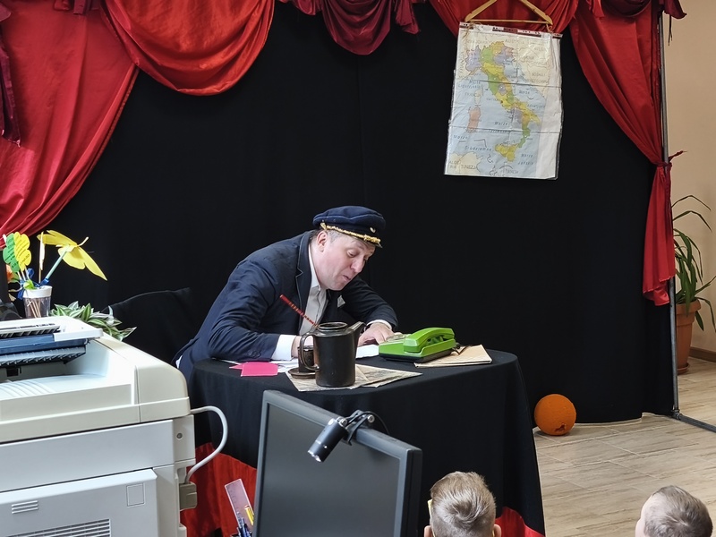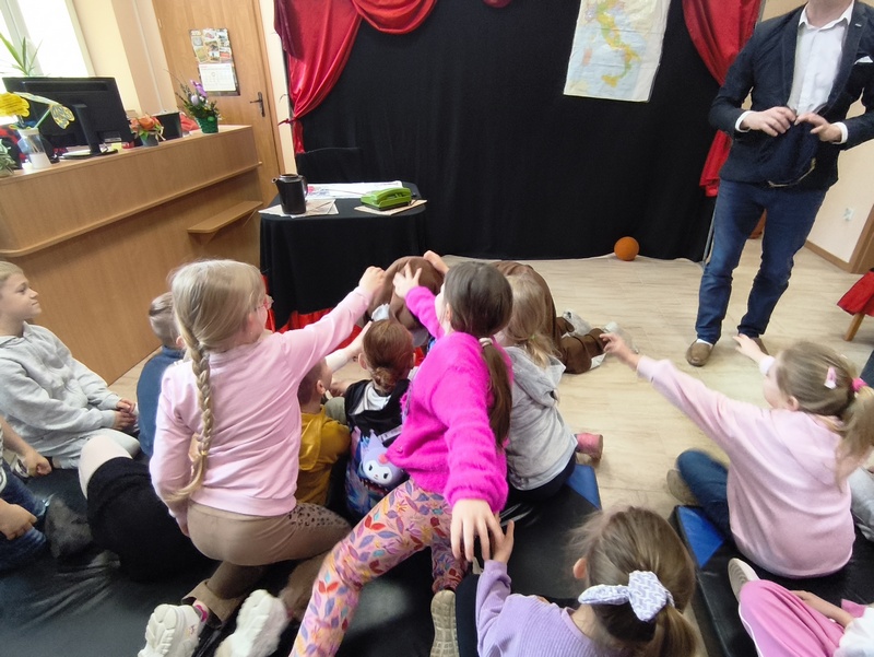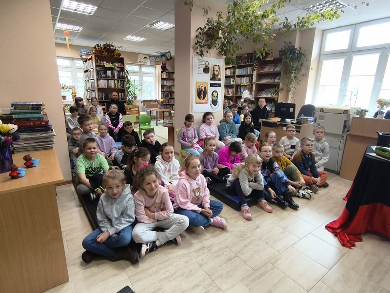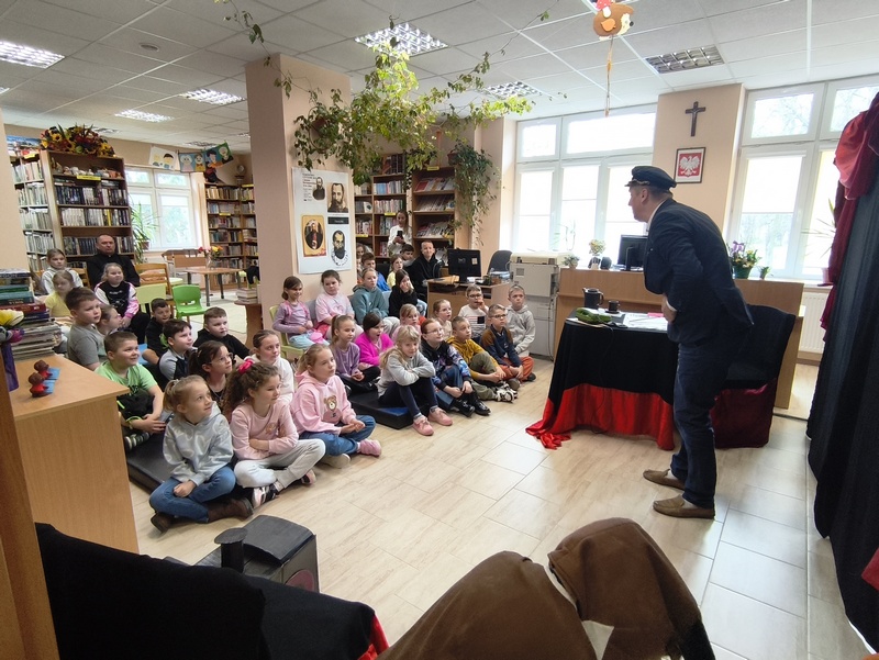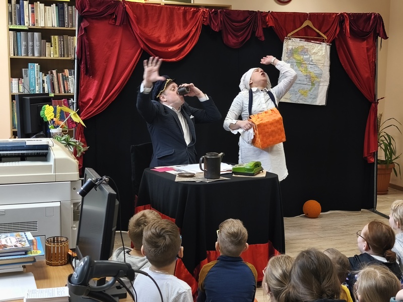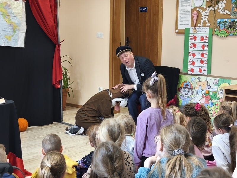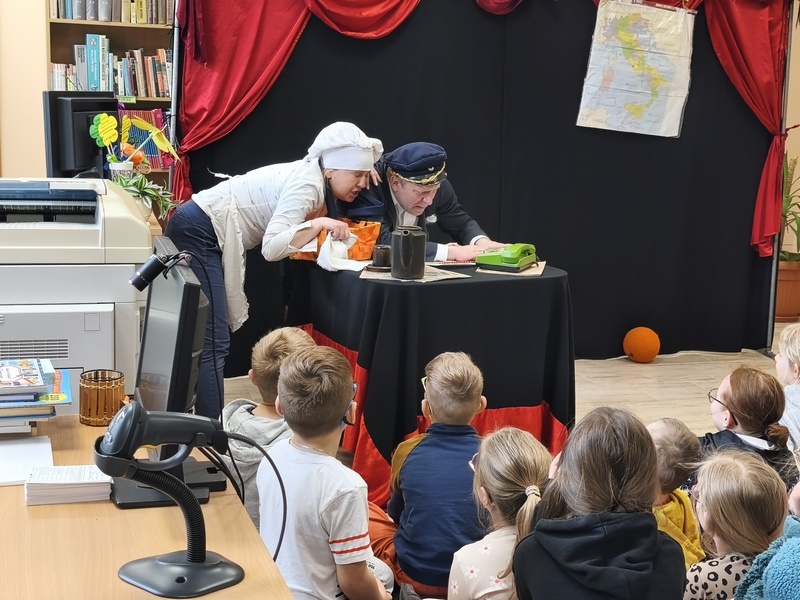 W Gminnej Bibliotece Publicznej Filii w Cieszacinie Wielkim 8 kwietnia 2026 r. gościliśmy Teatr Młodego Pokolenia z Wrocławia. Uczniowie klas I–III mieli okazję obejrzeć spektakl inspirowany lekturą autorstwa Romana Pisarskiego „O psie, który jeździł koleją”. Aktorzy w bardzo ciekawy sposób przybliżyli dzieciom przygody psa Lampo, które rozgrywały się we Włoszech. Widzowie z zaciekawieniem śledzili historię niezwykłej przyjaźni między człowiekiem a psem. Opowieść ta uświadomiła, jak wierne i oddane potrafią być zwierzęta oraz jak wiele dobra i radości mogą sprawić swoim opiekunom. Przedstawienie przypomniało również o tym jak ważna jest troska o zwierzęta. Nie da się ukryć, spektakl bardzo się podobał. Za występ podziękowały gromkimi brawami.