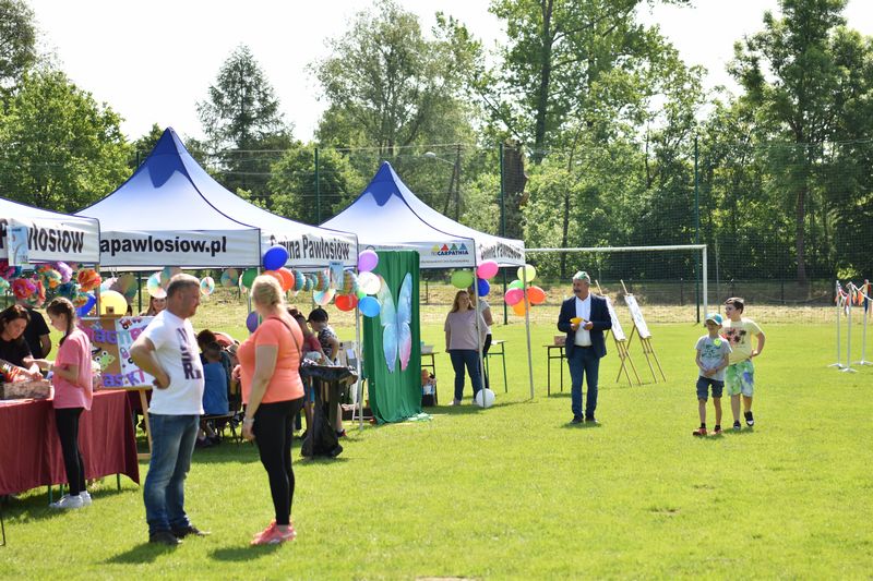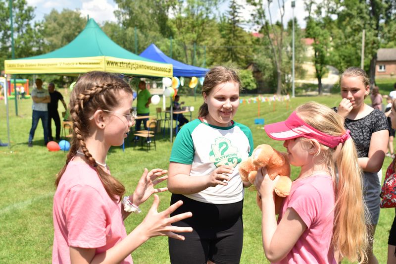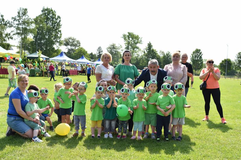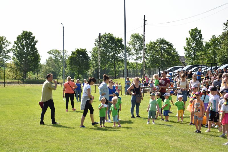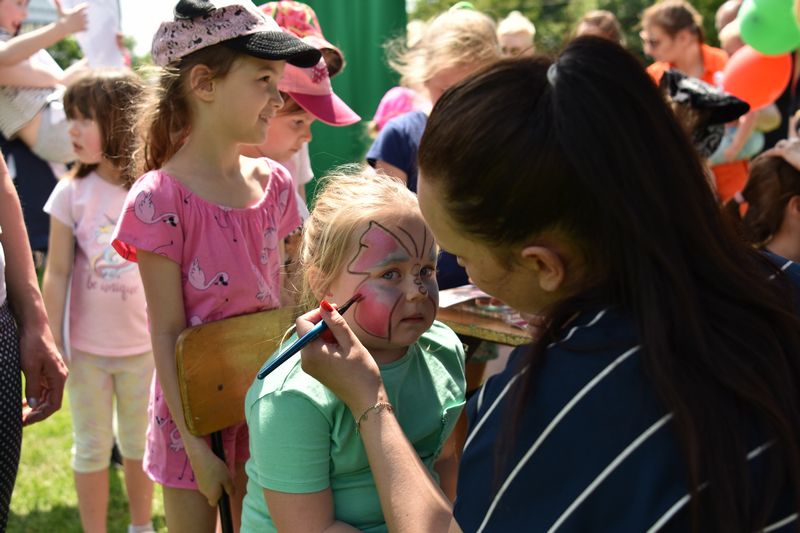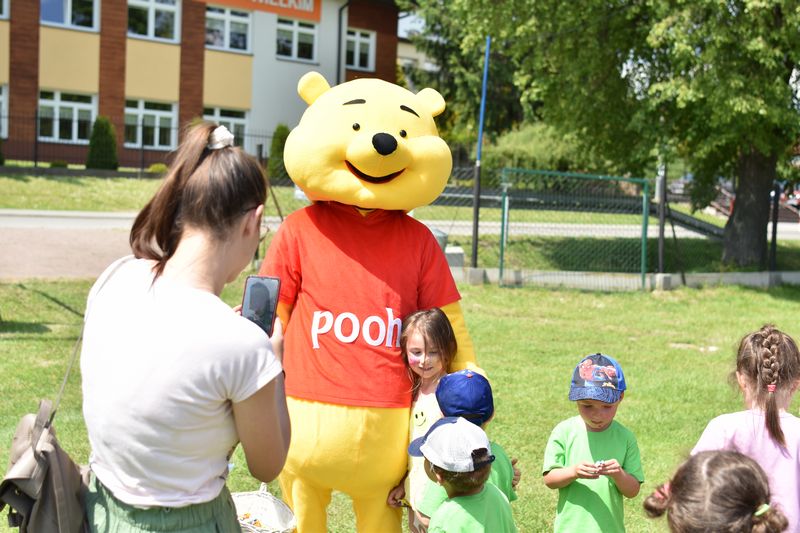 Imprezę rozpoczął występ muzyczny najmłodszej grupy dzieci. Na płycie boiska sportowego zostały przygotowane liczne atrakcje: strzelanie z łuku, samodzielne robienie wachlarzy i bransoletek, zgaduj zgadula, zajęcia ruchowe. Bardzo dużym zainteresowaniem cieszyło się malowanie buziek według wybranych wzorów. Za uczestnictwo w zajęciach dzieci otrzymały upominki, a Miś Puchatek spacerując pomiędzy uczestnikami częstował cukierkami i pozował do pamiątkowych zdjęć