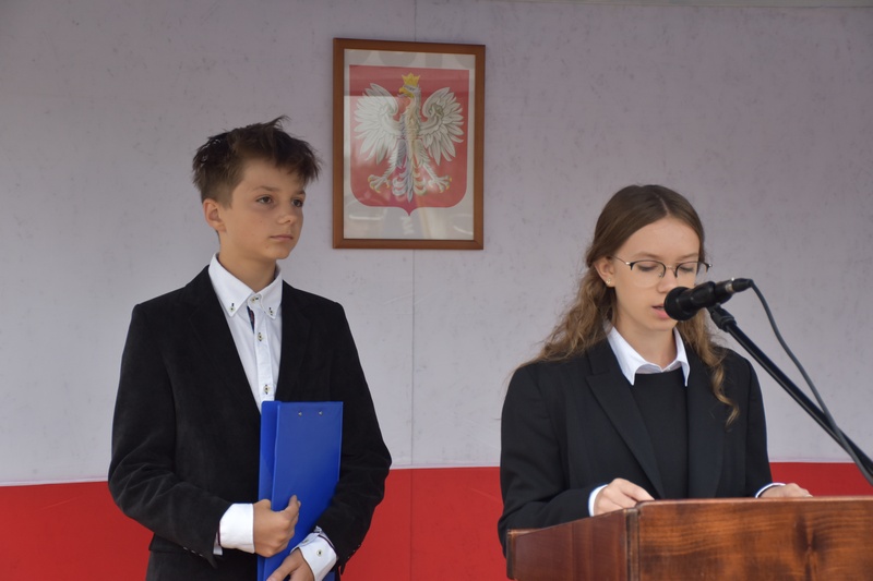 Przy grobie lotników rozbrzmiał Hymn Narodowy – czysty i mocny głos wspólnoty, która wie, komu zawdzięcza swoją wolność. Głos zabrali uczniowie Zespołu Szkół w Pawłosiowie, którzy przygotowali referat historyczny, przypominając dzieje polskich Lotników. Ich młode słowa były jak most łączący przeszłość z teraźniejszością.